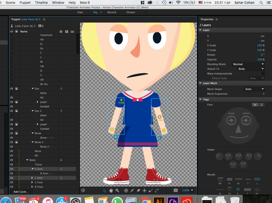 I'm trying to make my character's arms move by using the Handle tool, but no success. (Please look at the image below)
