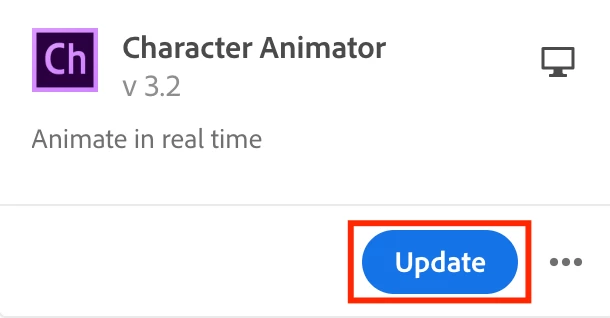 To update Character Animator, open the Creative Cloud desktop application and click Update.