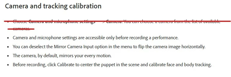 We get frequent posts from users that cannot get the camera to work with Character Animator. I have my own set of troubleshooting tips, but I think it's far from comprehensive. Is there a HelpX topic for troubleshooting CH camera issues? If not, there should be.