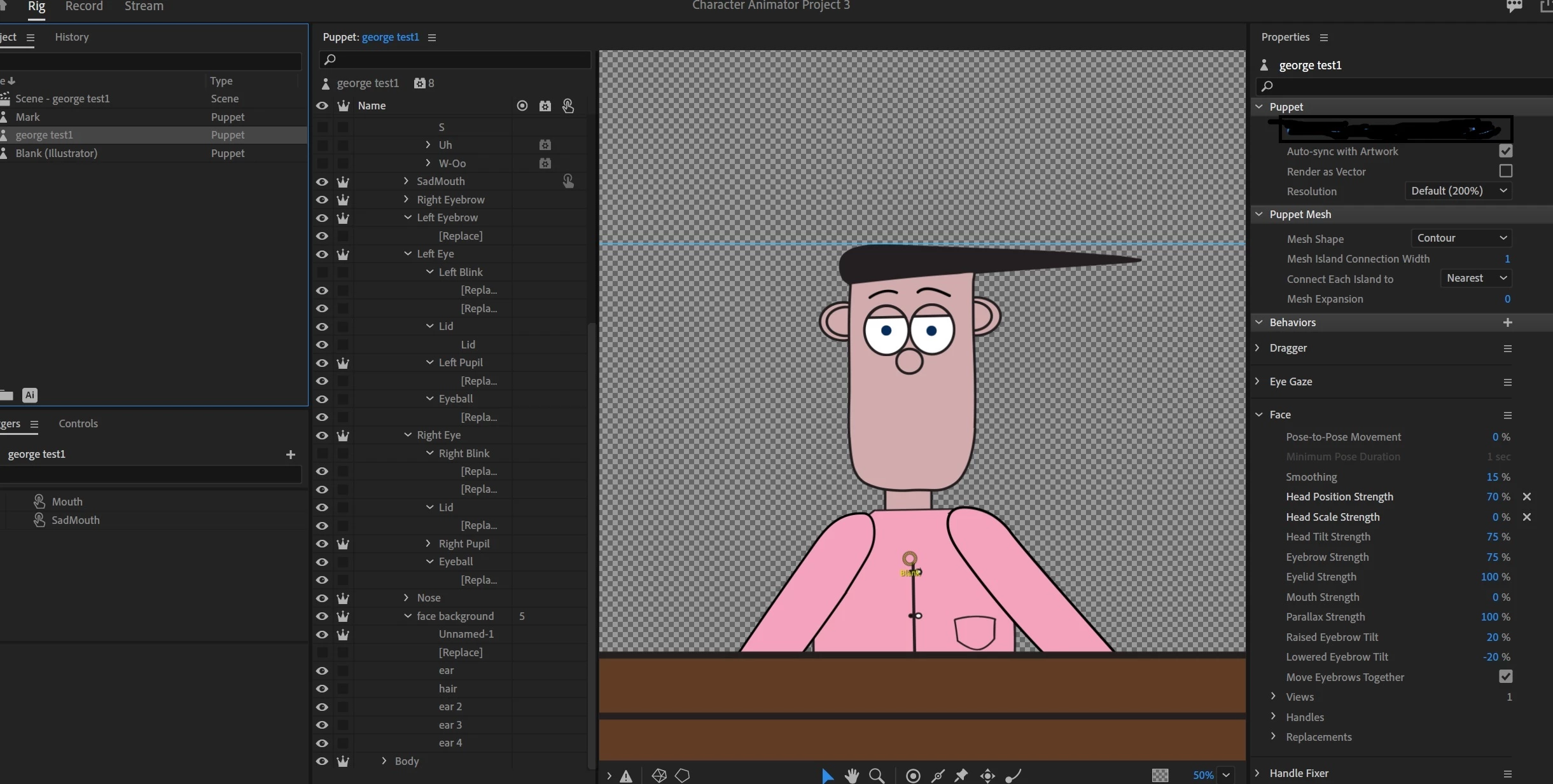 I've made the puppet in A.I, I used the 'blank' as a template and renamed it as george,