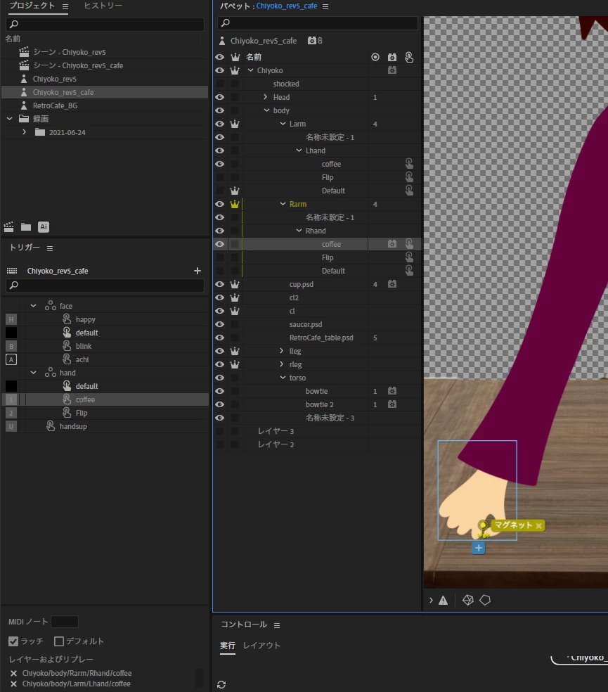 I'm trying to make an animation of drinking coffee with the magnet function, but the cup follows me even if I turn off the magnet function with the trigger function.