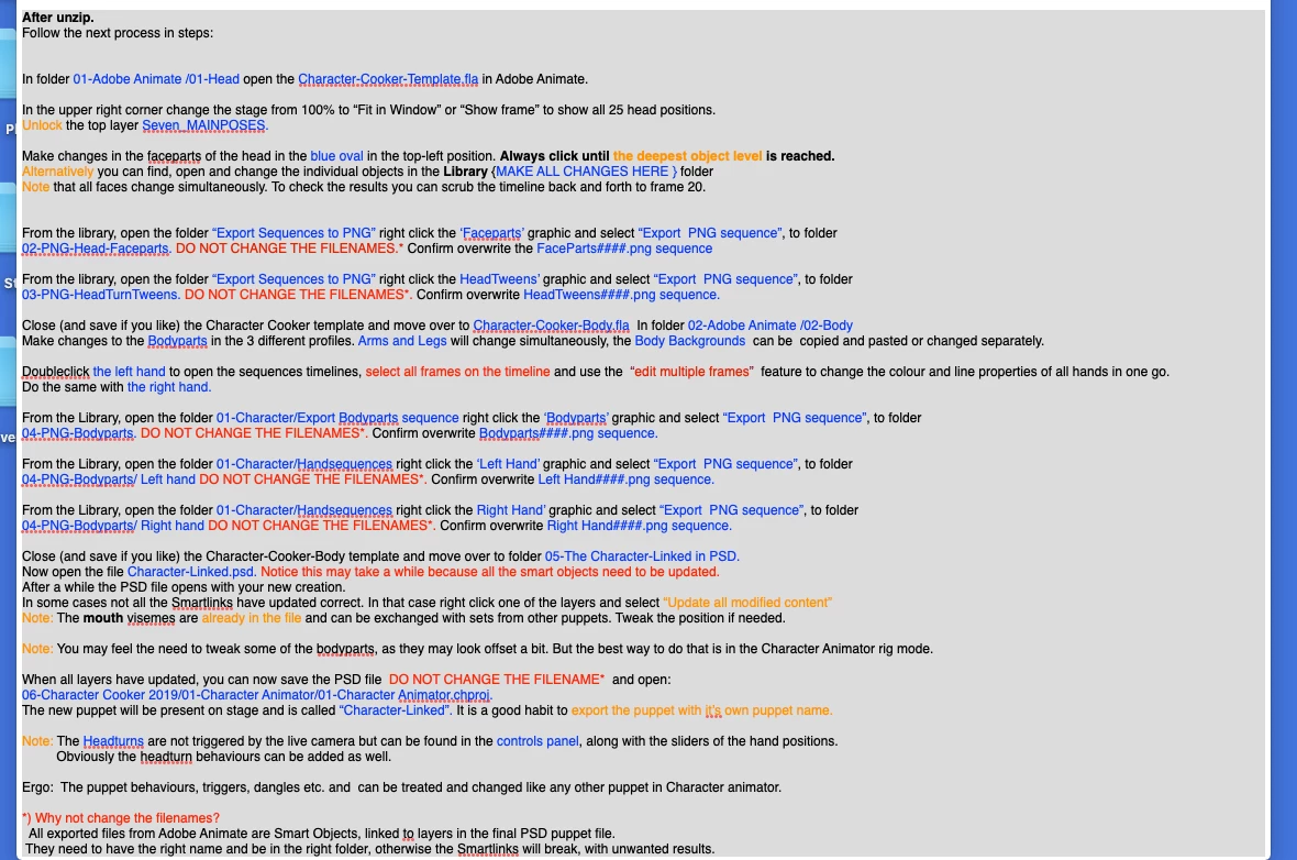 I shipped this written manual with my character cooker puppet creation workflow.