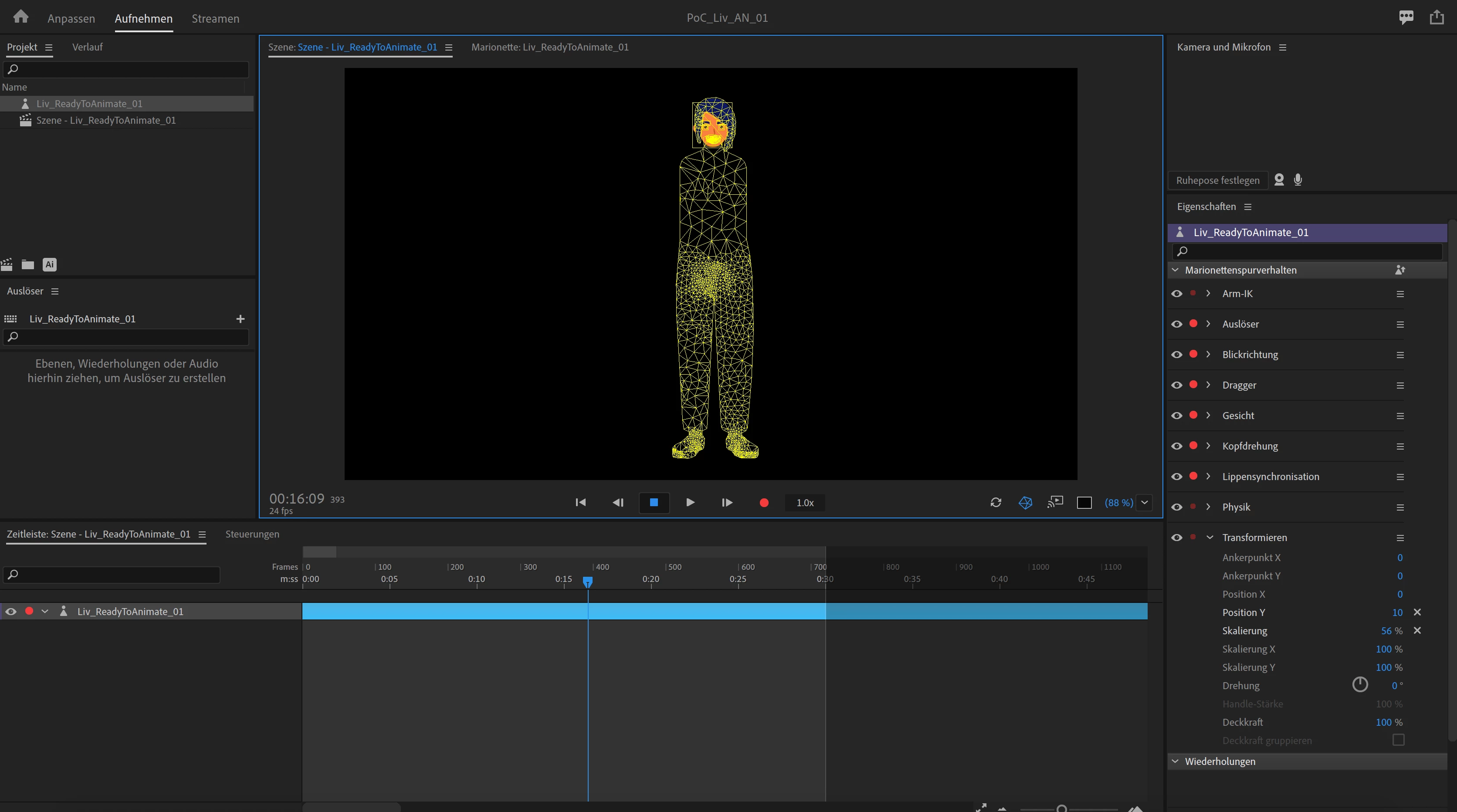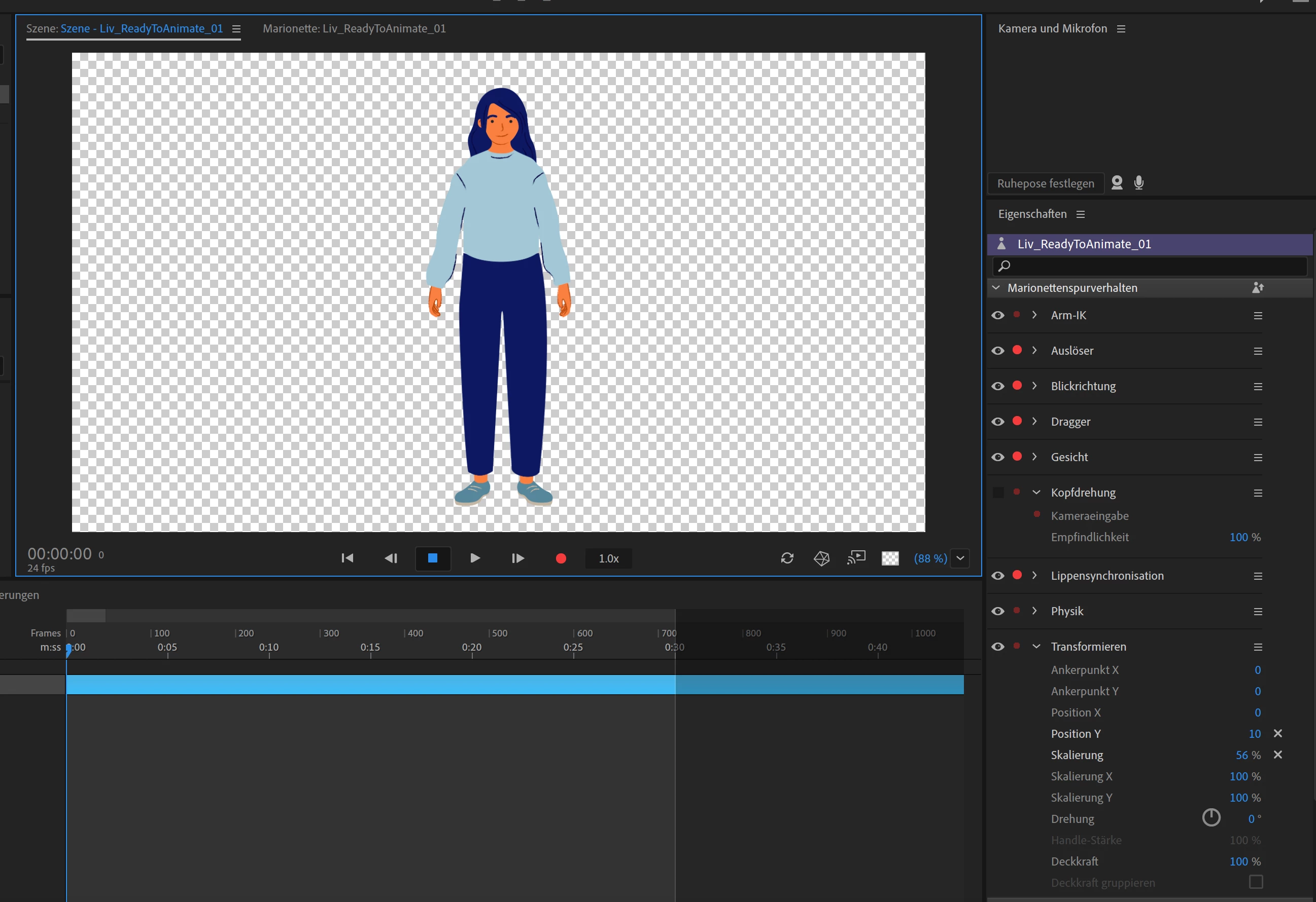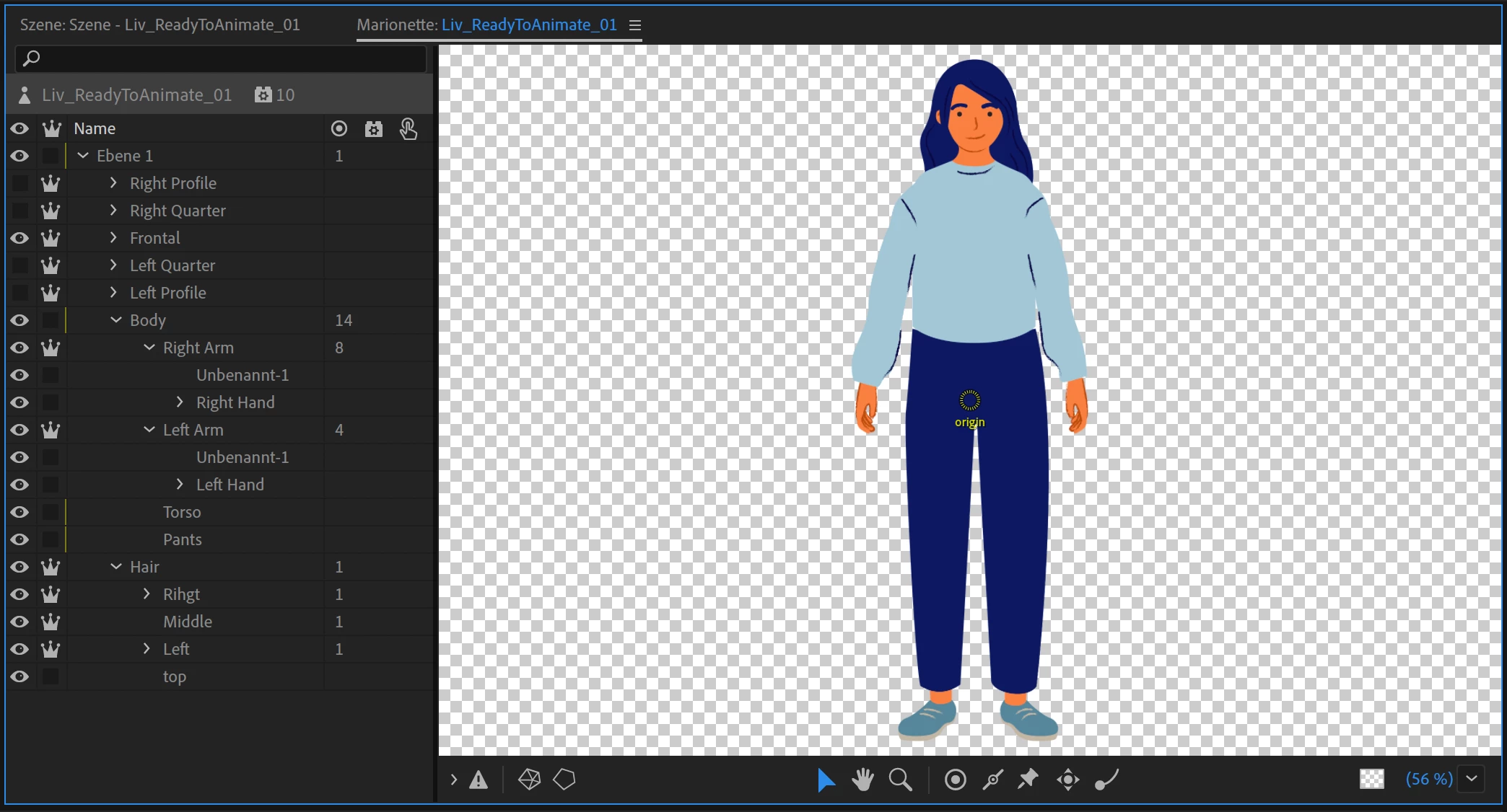Character only half visible in Szene