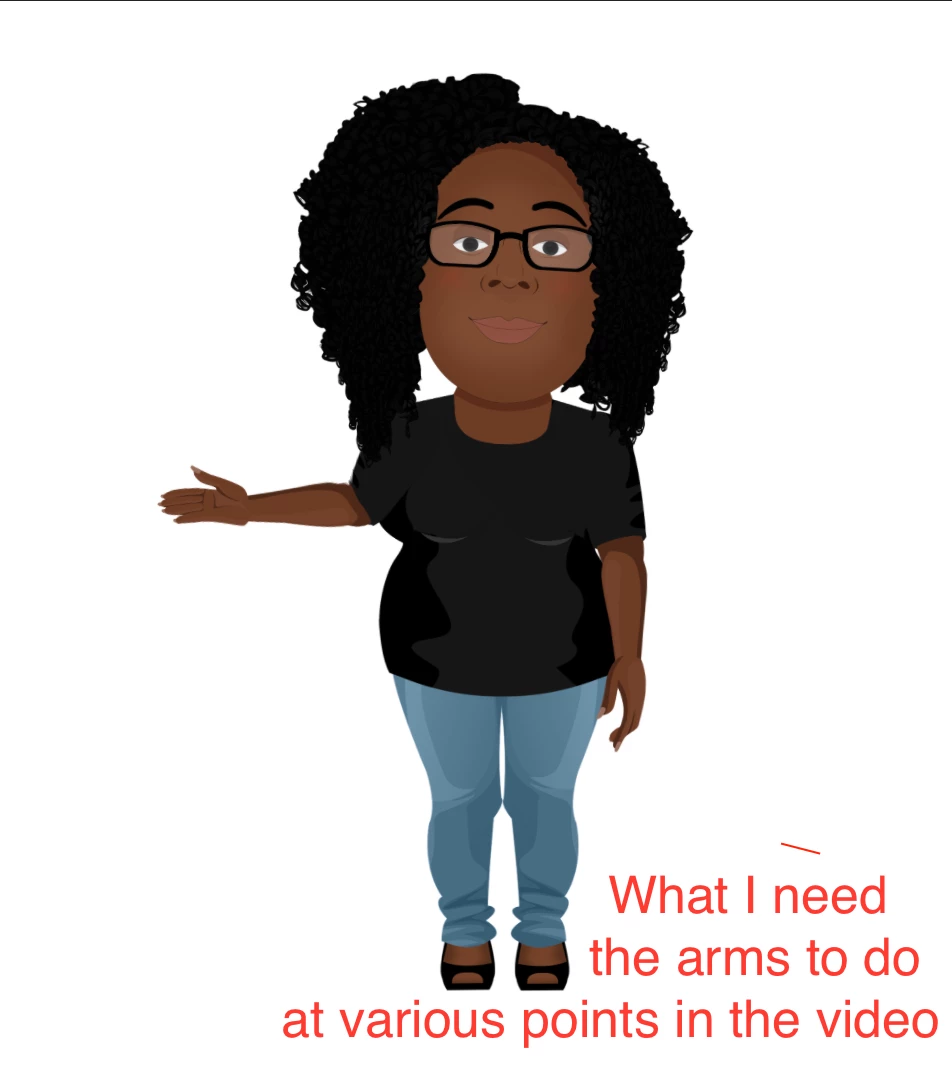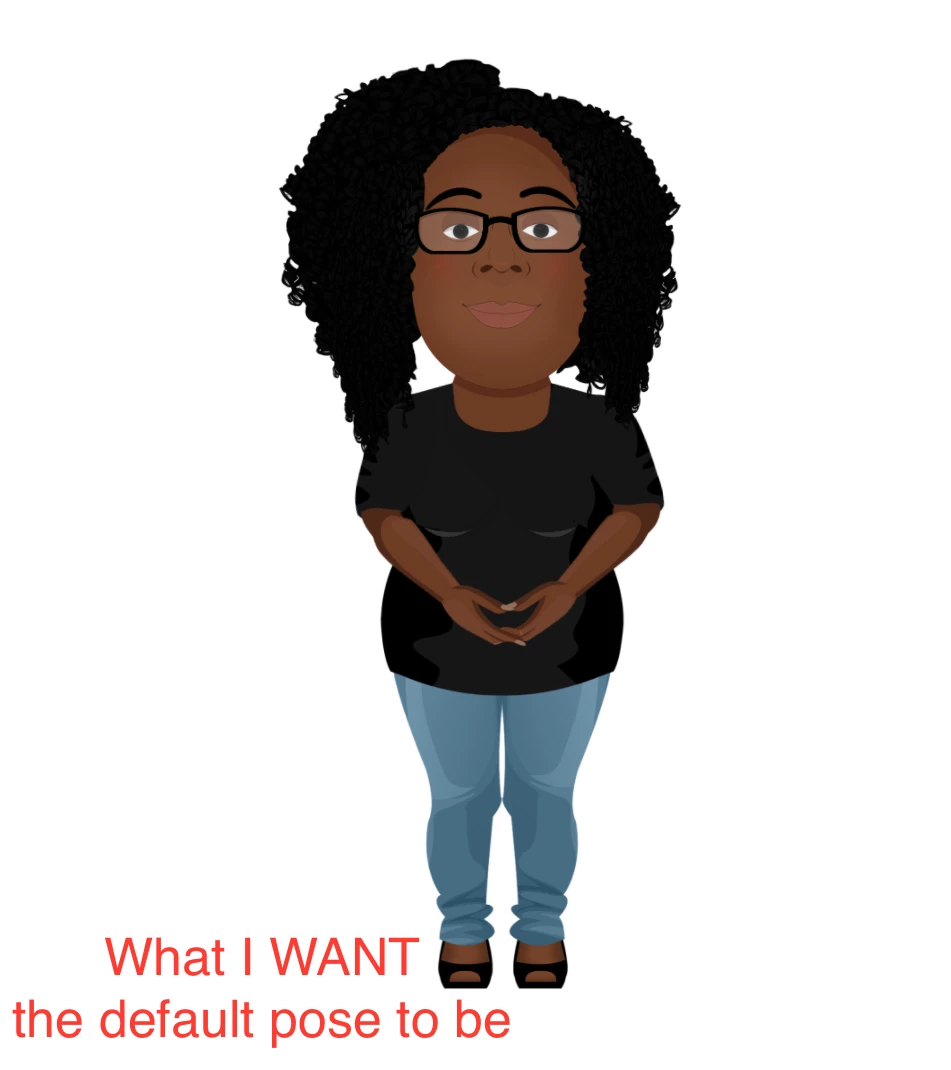 I'm sorry if this has been asked before, but I am trying to make a tight deadline and need urgent help. I know Premiere and After Effects (and I used to know Flash 100 years ago). Using that terminology, I want to KEYFRAME ARM MOVEMENT. I know that's not how it's done, and CH prefers setting proper arm IK parameters and live dragging handles (or maybe stetting behaviors...?). That would be fine, I COULD just do multiple takes until I get it right, but the character needs to go from a standard on-camera talent resting position (fingers clasped, hands held in front of torso) to a Vanna White style gesture to either side. I didn't make the character, but when I try to amend the PSD to set her initial pose at that "crossed hands" pose, I can't bend the arms properly, no matter the IK settings. If I use the character I was given as-is (arms at side by default), the arms always go back down to start and I have to live drag them one by one into the initial position, and THEN make the appropriate gesture. If I mess up at all, I have to start over and the arms go back to the sides. Trying to blend takes won't work if the default is arms at the side when I want the default to be hands folded in front. I would like to set a behavior, but it seems I can only do that in "rigging" mode, but I can't move the character unless I'm in "record" mode. The character won't stay in place for me to jump back to "rigging" mode to for me to say "HEY! this is what I want her pose to be MOST of the time." I hope that makes sense. I have perused every video I could find on arm IK, keyframes, and rigging, but they don't answer this question in a way that seems pertinent to my problem. I have attached screenshots. Thanks in advance.