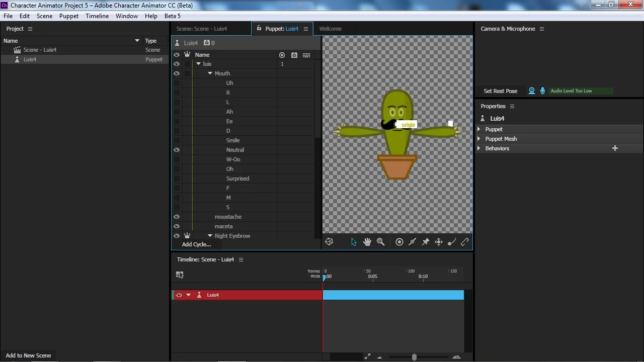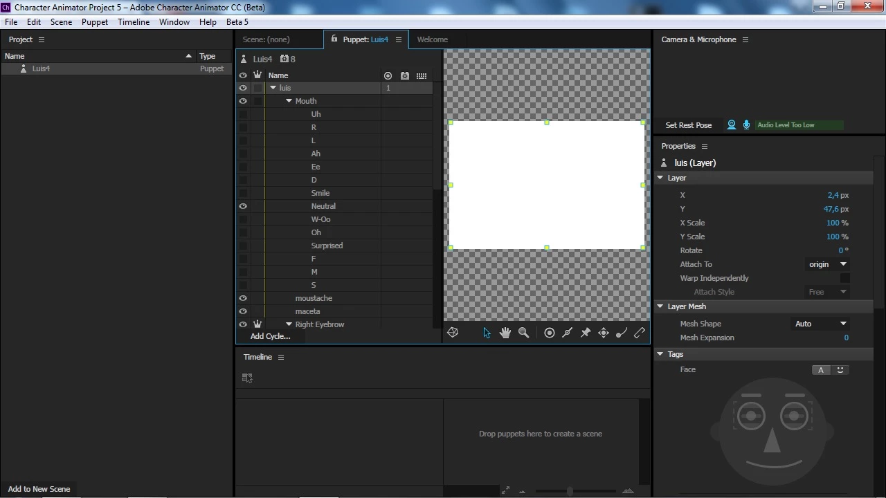 Cuadros blancos y negros en el puppet CHARACTER ANIMATOR
