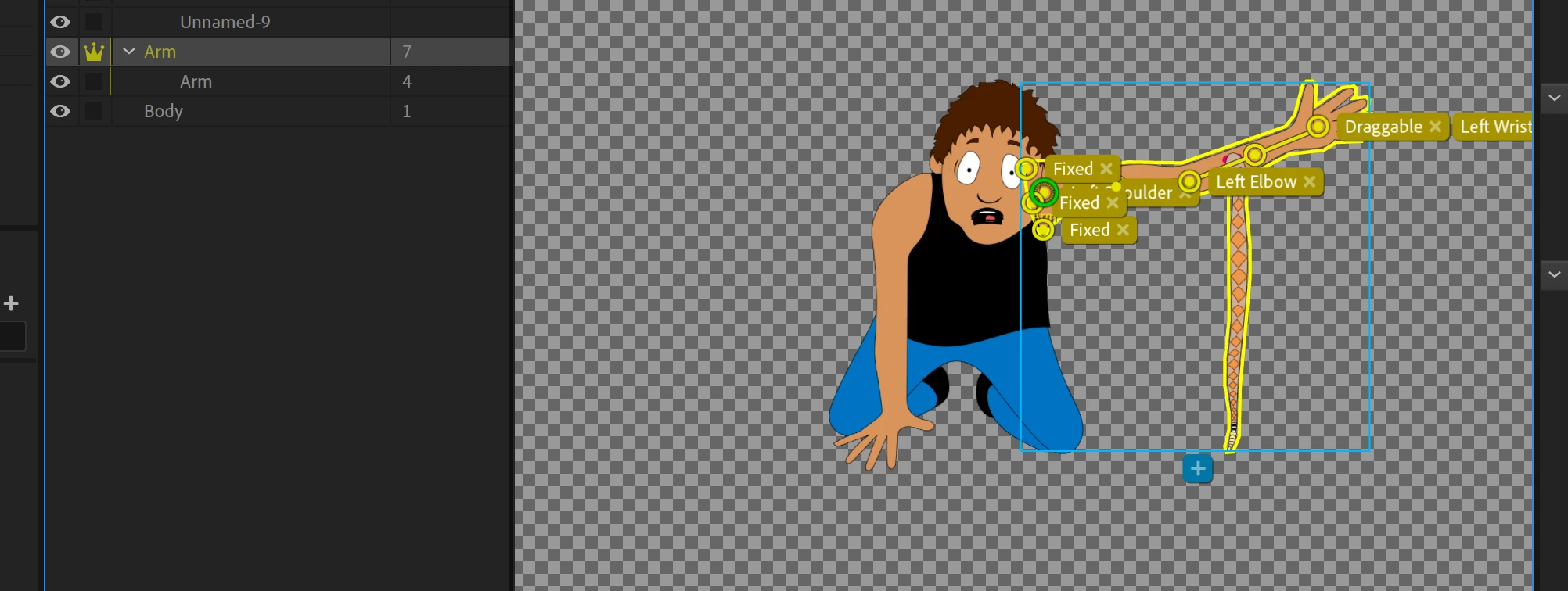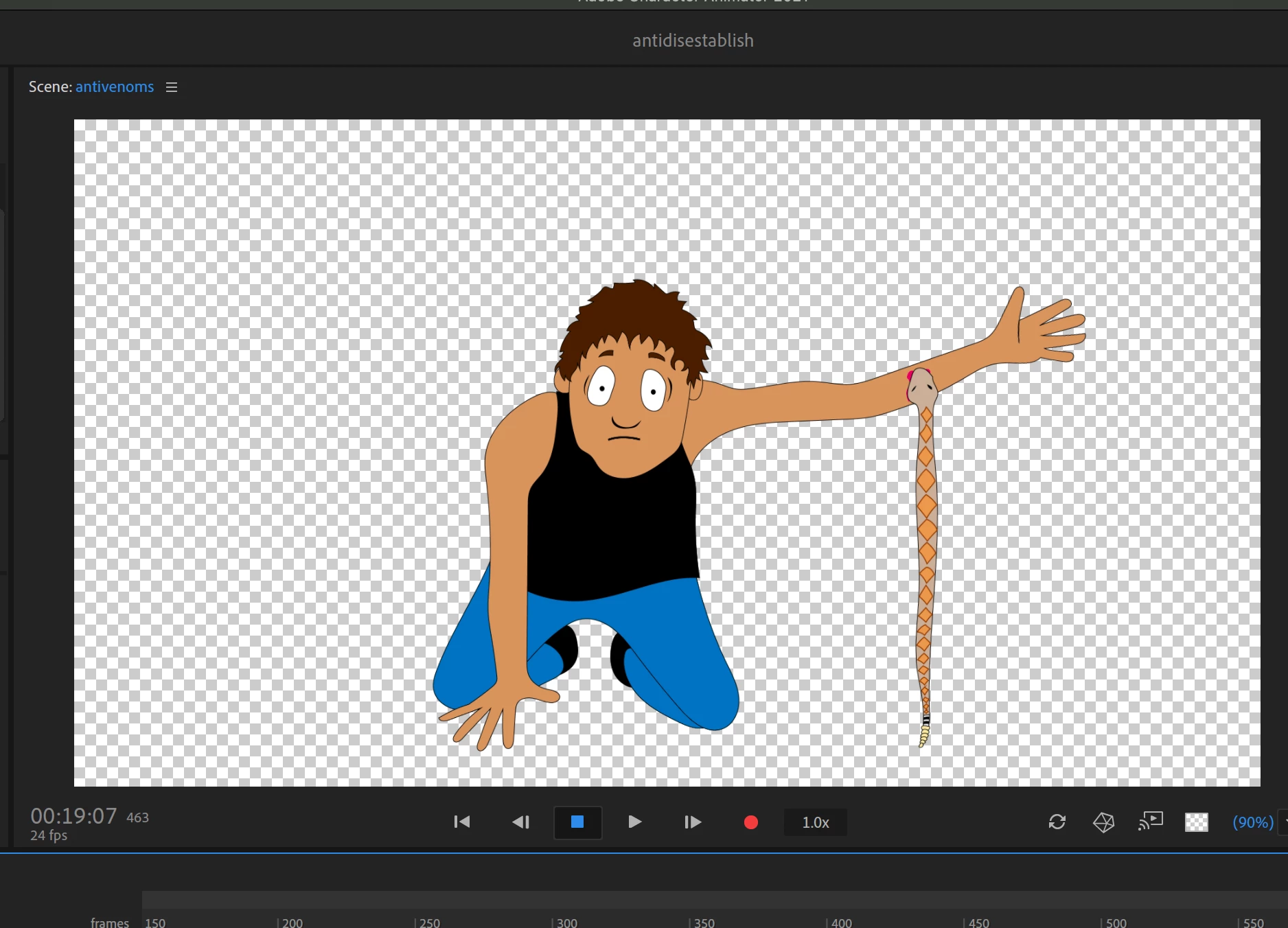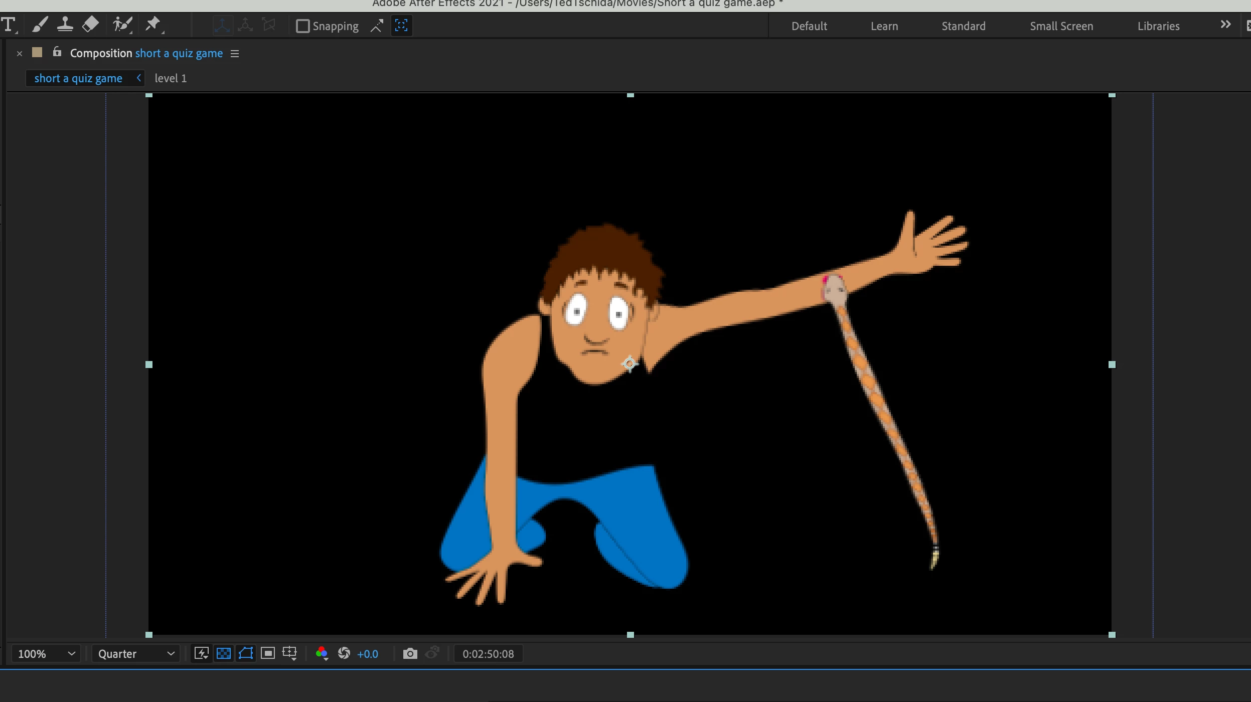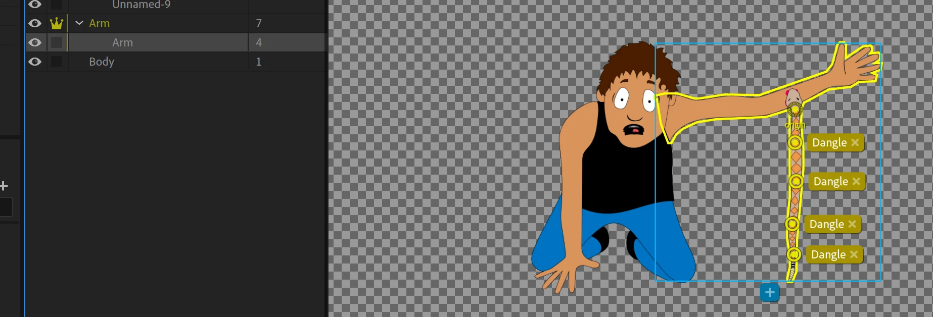 I've got a very simple puppet here with one working, draggable arm, and a rattlesnake dangling off of it. When I put the link into After Effects as an Adobe Dynamic link, however, the rattlesnake doesn't dangle the same way (stiffer, less wobble, gravity etc.), and it takes away from the whole look.