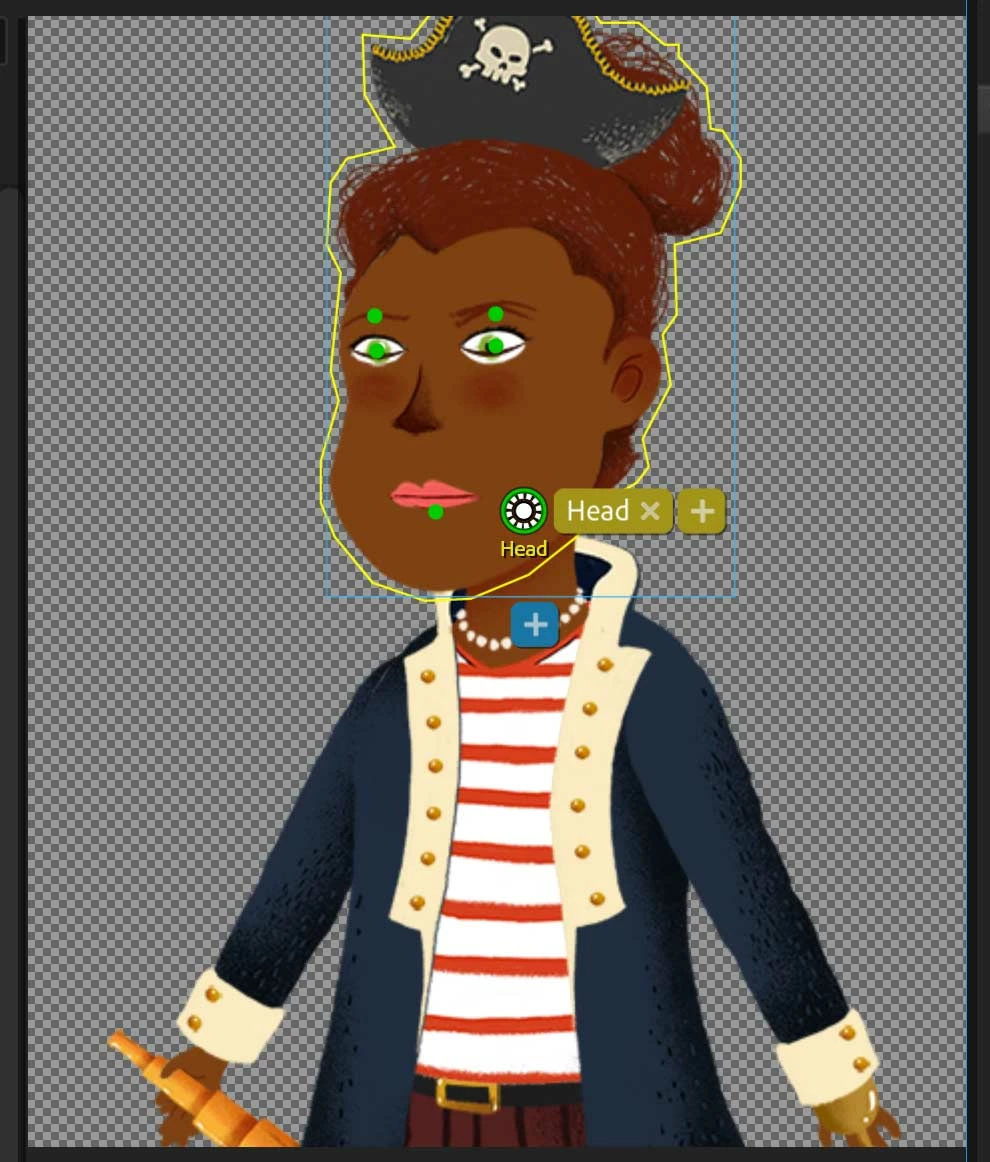 This is the fourth time I've created this puppet. I've stopped doing it from scratch and now just edit comprable templates, since I know the templates work perfectly. (This iteration was an adaptation of the woman pirate standing on a ship.)