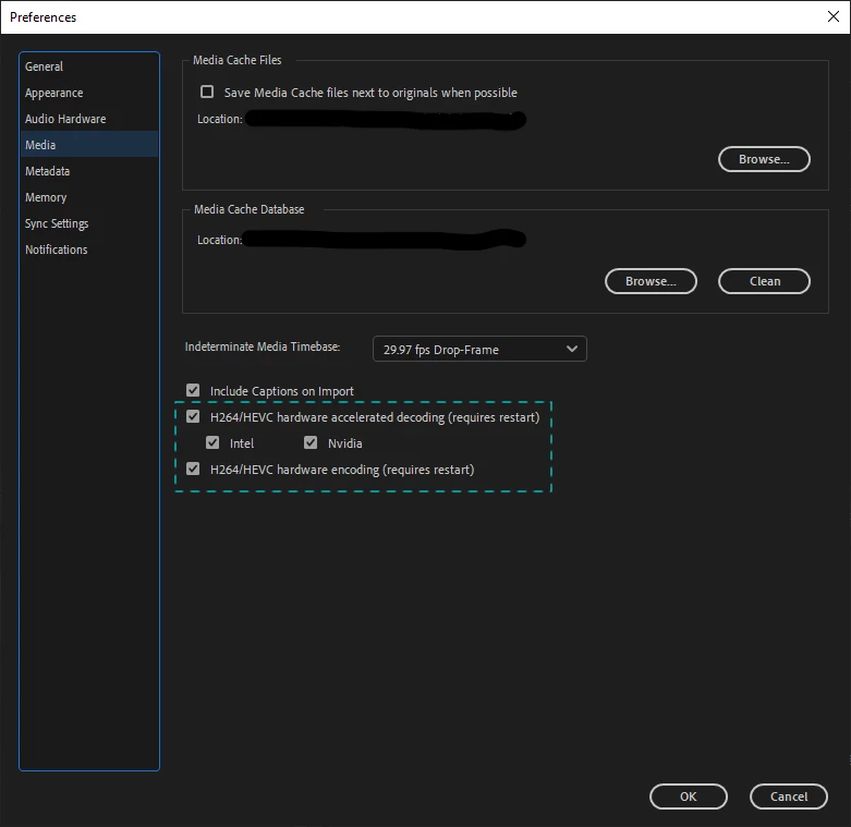 Another workaround is to try disabling some (or all) of the hardware decoding/encoding settings in AME's Media preferences: