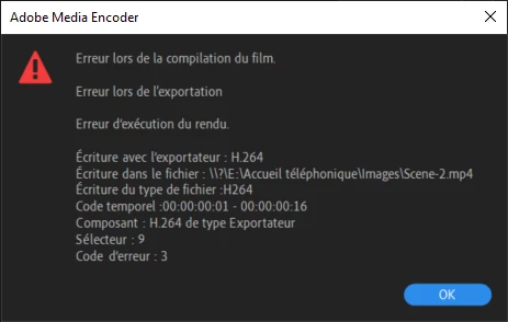 Sorry... I didn't understand the reference. I use AME version 22.0. I asked a colleague to try and the export is working with his device. I think I have different parameters or graphic board, which can explain that it doesn't work on my device. But there has been 2 years I am using this PC and Adobe CC, and I had no problem until now.