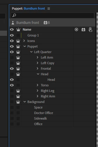 Problem I am doing a horror animation and want the pupils to latch on and off.