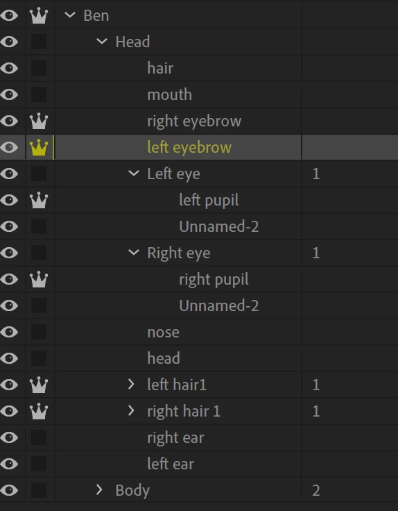 I made my characters' eyebrows independent and tagged them as eyebrows but in the scene their default position moves to the middle of the eye and their movement is only subtley up and down. How to fix?