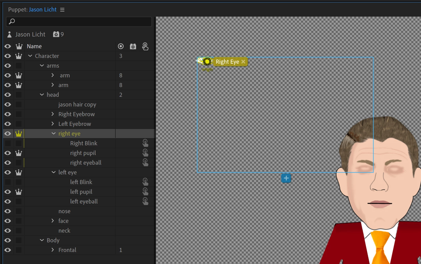 I can't figure out why I can't get his eyes moving. Something strange is goign on where its taking the parts and randomly putting them far away from where the eyes clearly are. Any ideas?