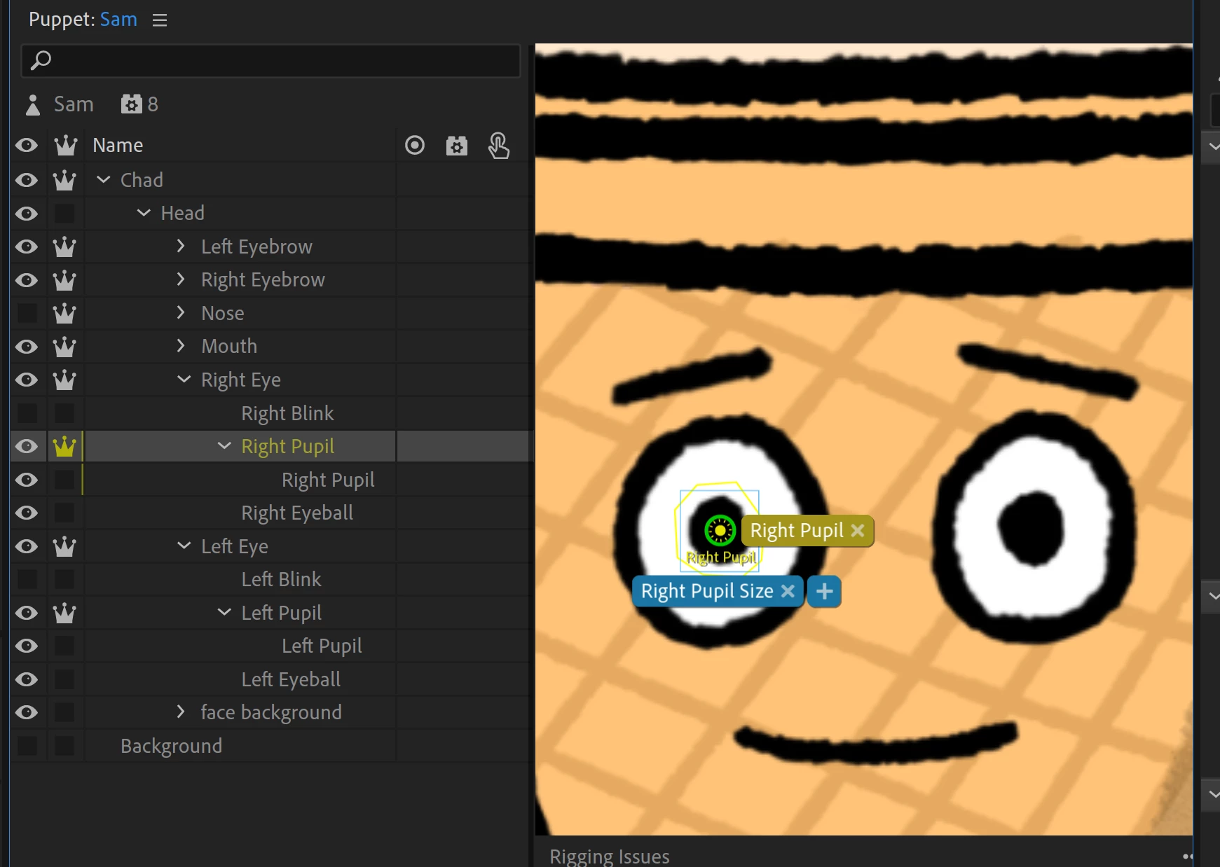 Also, when I re-imported the file, the origin points for the eyebrows and pupils were off. This image shows where the origin point is meant to be.