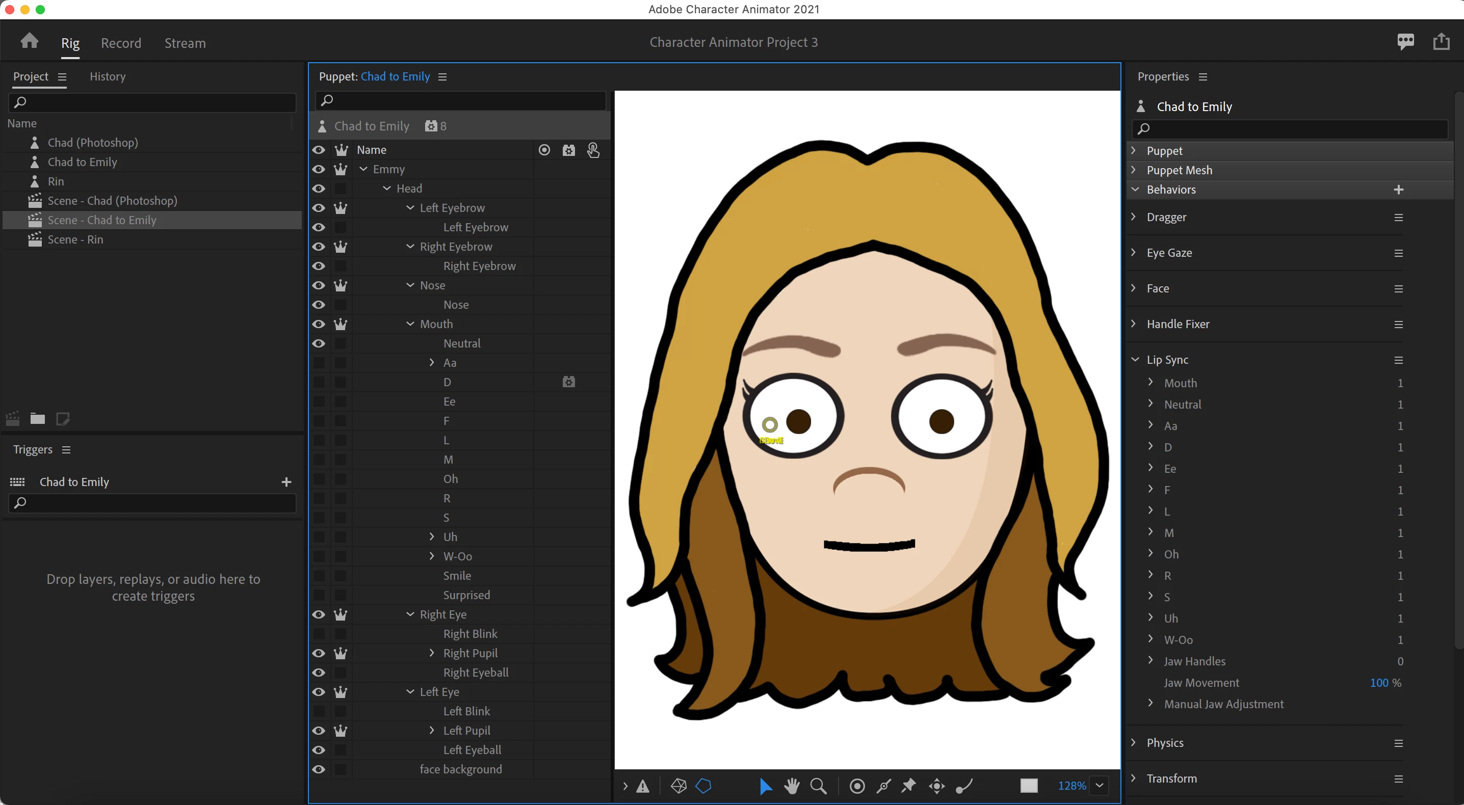 I am very new to Character Animator. I just created my first puppet, a floating head I modeled off the example head, "Chad." I made it in Photoshop, and imported it to Character Animator. It looks ok, but many of the mouth shapes do not show up. This causes the mouth to completely disappear at times when I tried to lip sync on the puppet.