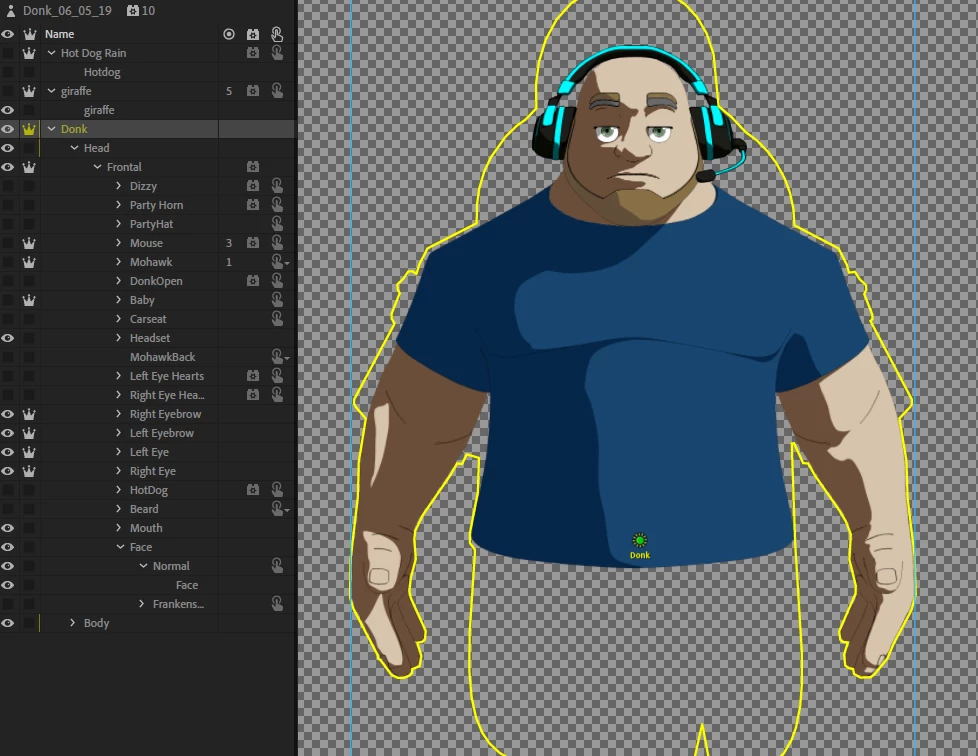 Upgrading to the new 2.1 build release did something to the puppet rig. Originally, this character would tilt left and right with a fixed point at his stomach/waist area. No matter what I do, it seems like the puppet is stuck wanting to bend at a point around his upper chest. I've tried removing all fixed points, adding a new fixed point, and nothing seems to affect it.