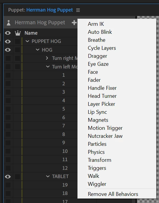 One thing you can do if you want to get fancy is add multiple dragger behaviors to a puppet. Go to the level of the puppet you want (the root is fine) and add a new dragger behavior. There is a column in the puppet hierarchy that has a lego brick icon. If you hover the mouse in that column a little plus appears. Click on that and a drop down list appears of behaviors you can add - add another “Dragger” behavior.