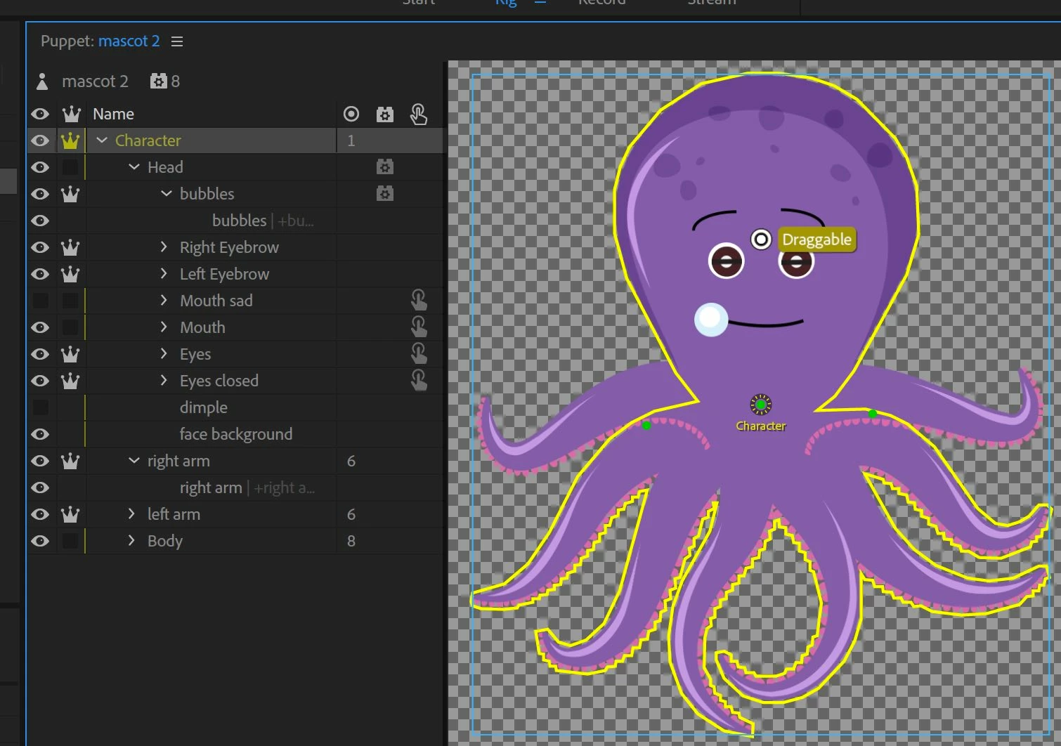 For the following I put a dragger on each hand plus a dragger on the chest. I did a first recording for the arms, then I rewound the playhead and recorded the chest movement with the same dragger. (This puppet had pins on the feet which I removed to make it float.) This video has a simple example Project Wookie, Episode 3: Recording a First Scene - YouTube (I skpped into the video) - if you play from the start it shows recording one hand then the second. plus renaming the handles to make it easier to understand in the timeline.