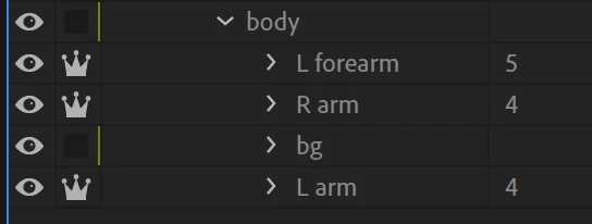 The "L forearm" (lower opacity) is the exact same as the "L arm" ( I even copy and pasted the joint points) with the intention of copying any movement I make with one to the other and then lower opacity of the forearm to 0% in 1 and the shoulder/bicep to 0% on the other.