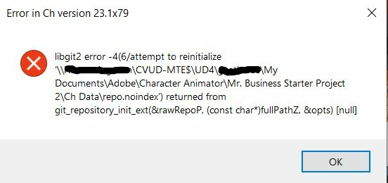 Getting libgit2 error -4(6/ attempt to reinitialize FILEPATH) returned from git_repository_init_ext