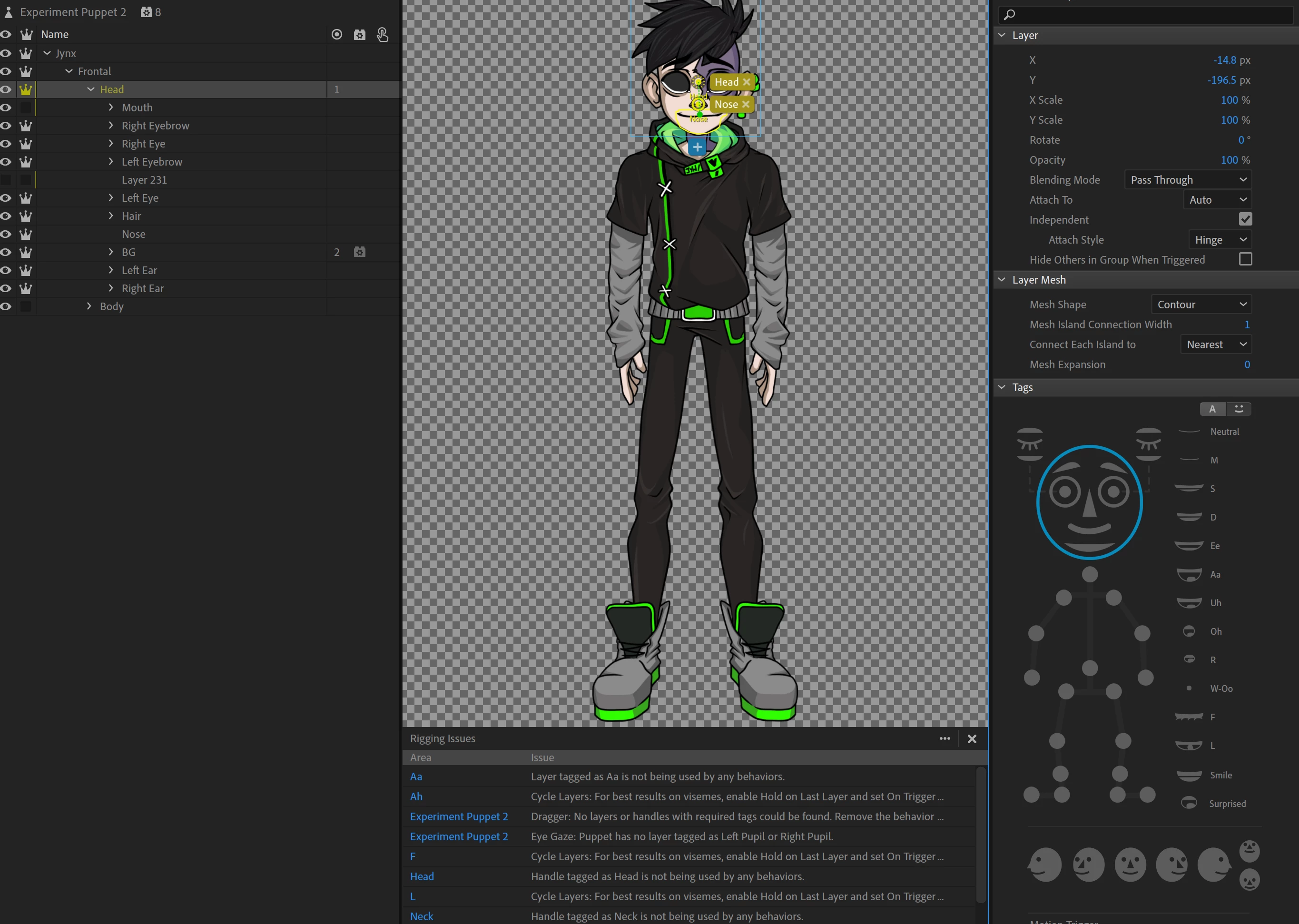 I have rigged the eyes to blink, the mouth and its cycle layers work perfectly.
