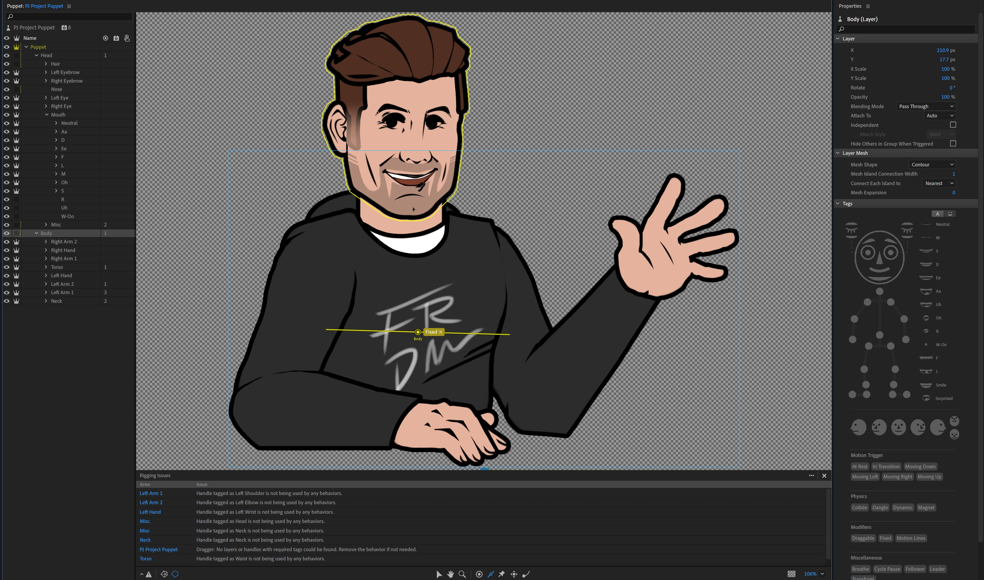 The problem I am encountering is that when I pin the torso, the head flies off. But if I unpin the torso, the entire body moves with the head. I am also confused because when I select the Body folder, the head becomes highlighted. Could I please get some help? I have more questions after this, but one step at a time, I suppose.