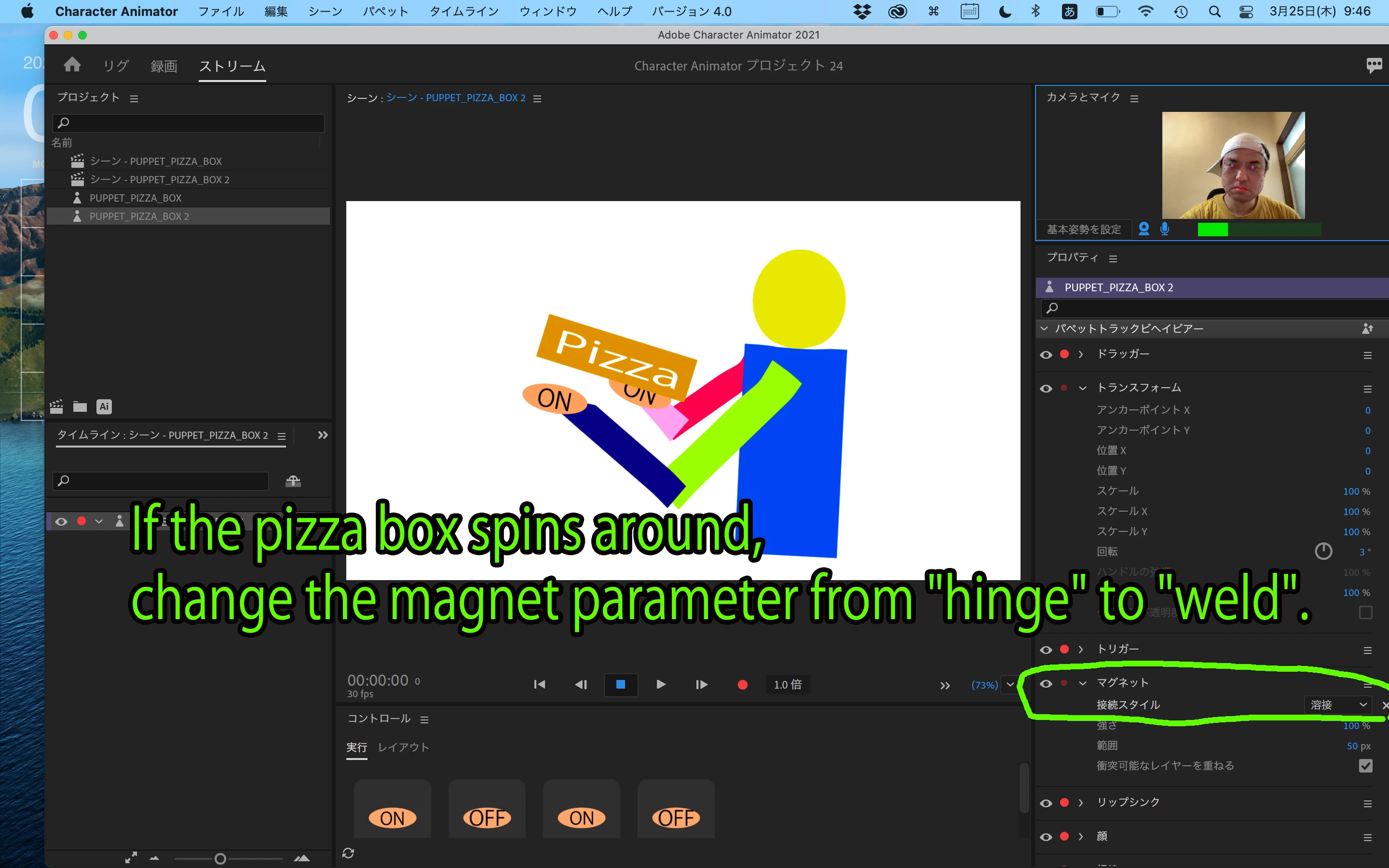 If the pizza box spins around, change the magnet parameter from "hinge" to "weld".