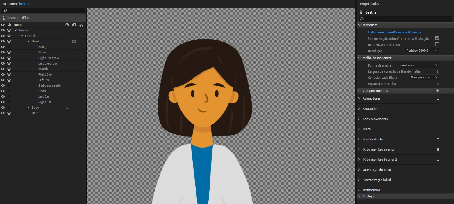 I have been following this tutorial to make the character's head more independent from the body by using two "face" behaviors: one to control body movement and the other to control the haed movement. But I can't make the back hair follow the head's position and inclination.