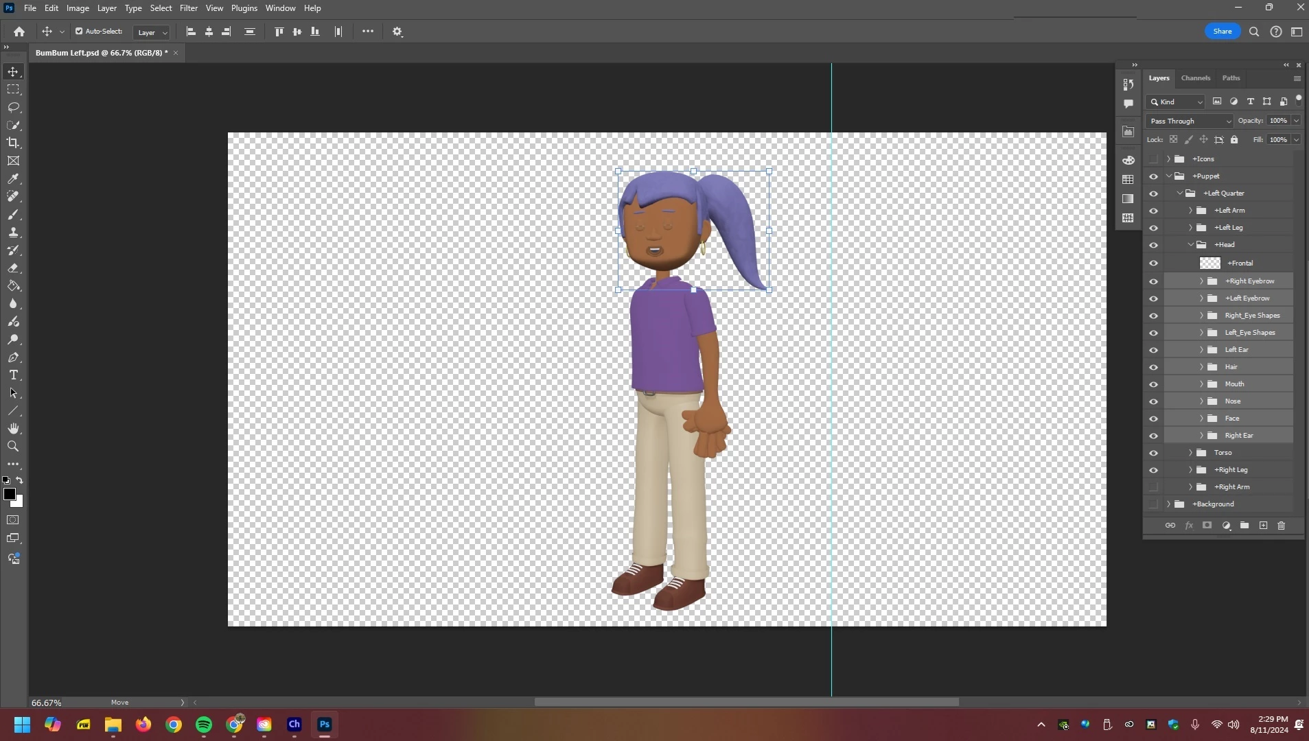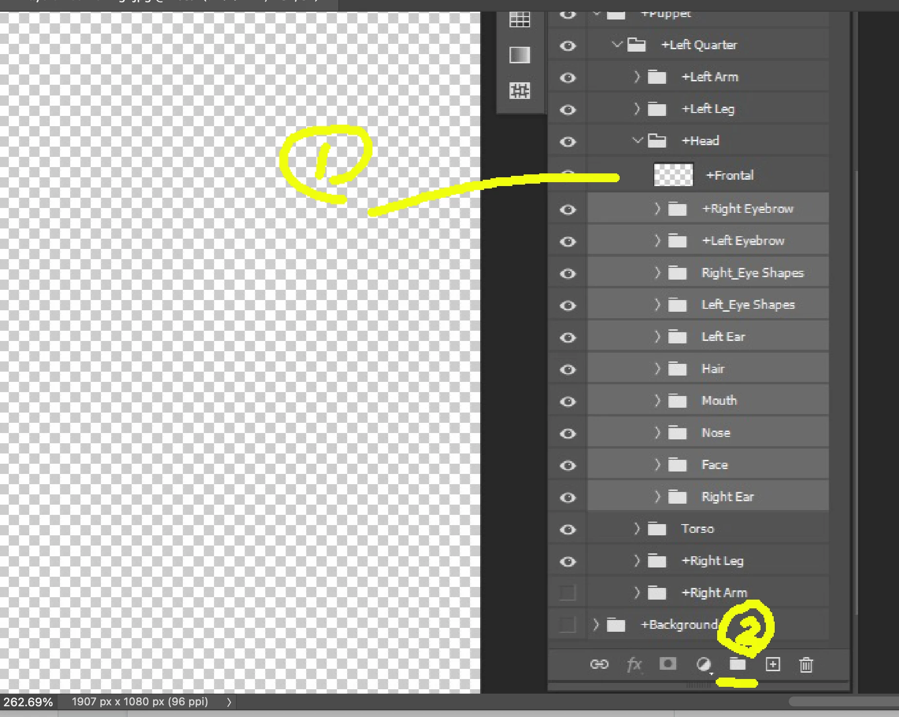 How do I move layers from a charator into a new layer in Photoshop. I am working with The Professional and am trying to create a frontal view. I am stuck at 2:03 in the OkaySamurai Head Turns & Parallax video. I have created a new layer called +Frontal and selected the underliying (sp) layer but they will not move into the new layer. ChatGPT dosn't seem to know either. I have been 2 days trying to solve this. Its the weekend so I understand the delay.