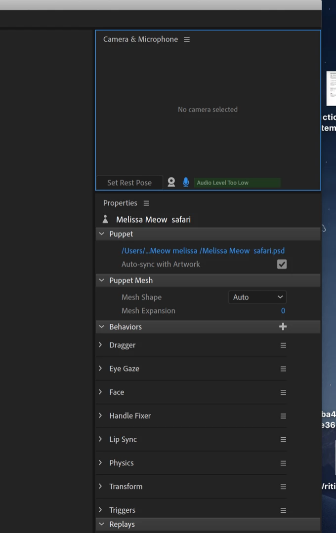 how do you turn webcam (camera} on in character animator?
