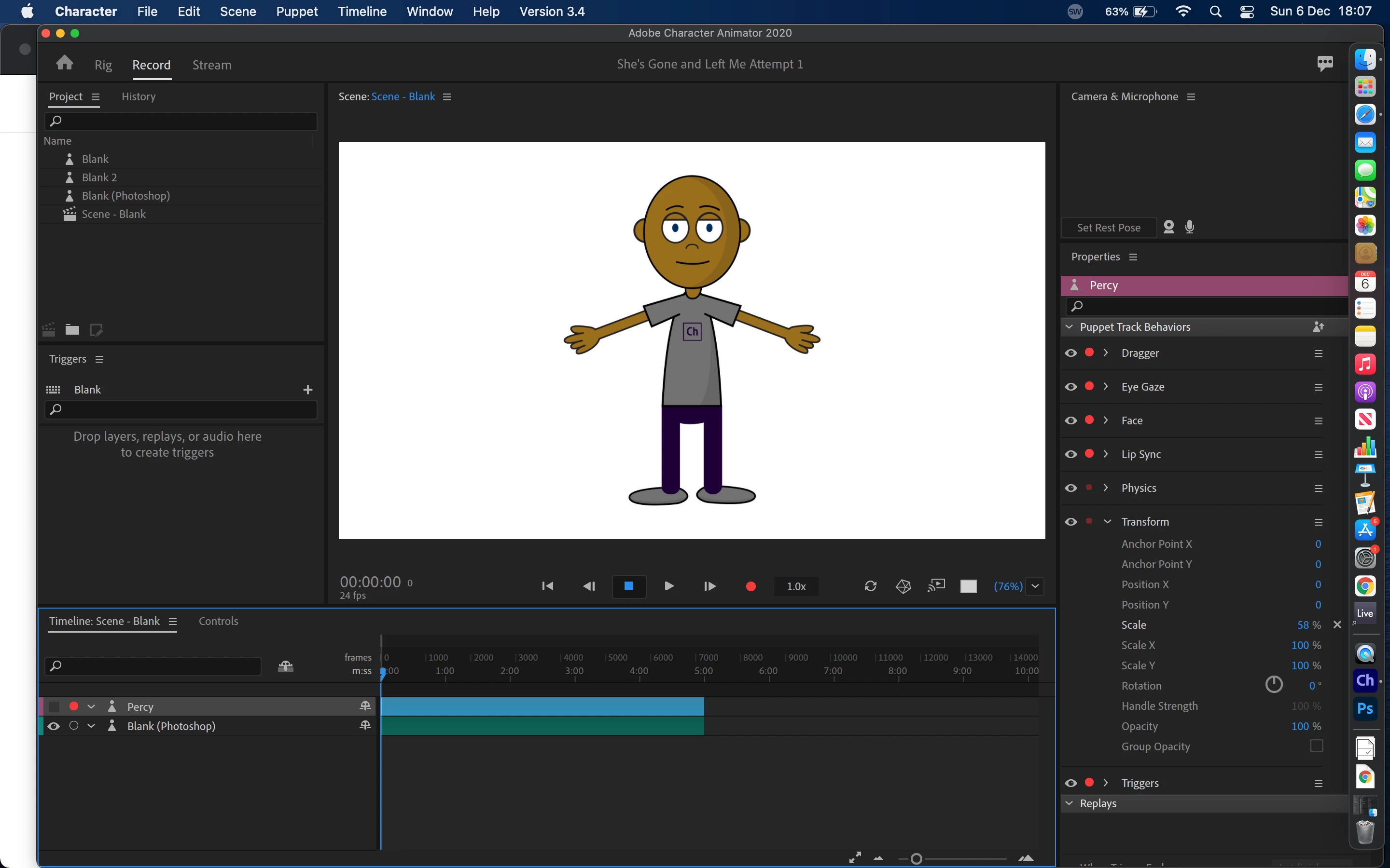 Now that I'm trying to create another video with the same character I created, I have imported the psd that I used to create my guy but don't have any of the functions set up (moving arms/lip syncing etc.)