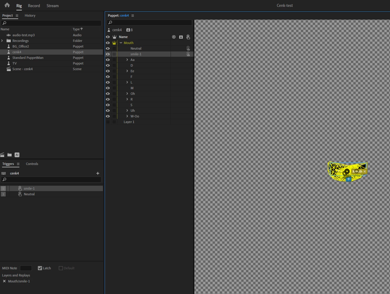 How to create a trigger to swap a Neutral mouth drawing on the puppet?