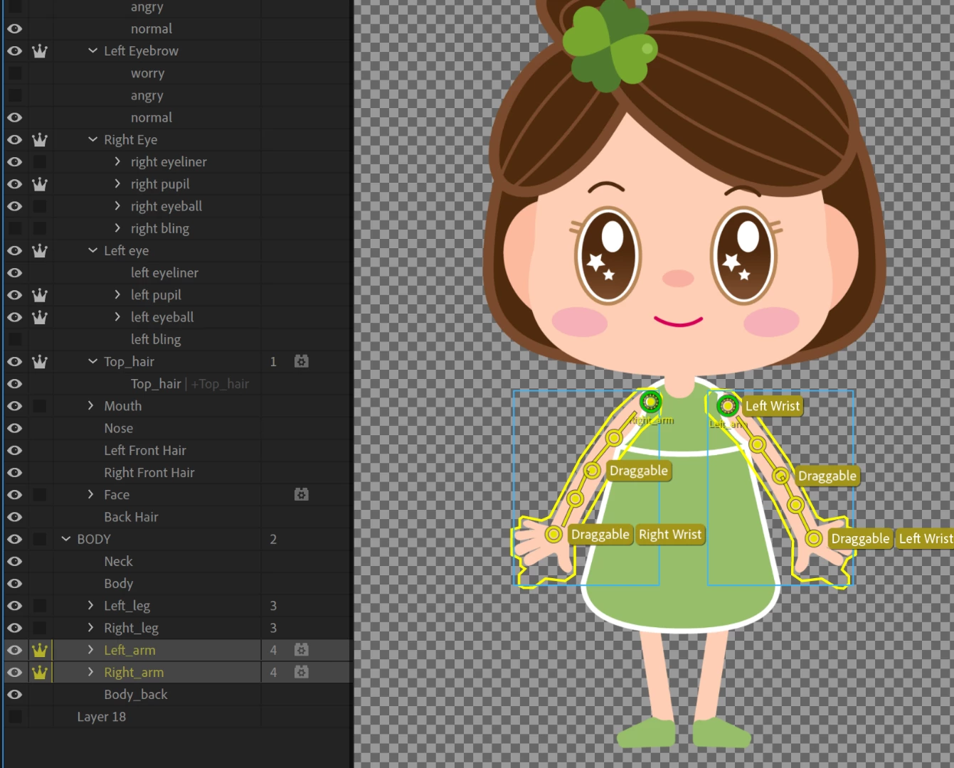 Hi, I have created my own puppet. However, I dunno why I cannot control the arms by adding draggers individually. May I have any suggestions to solve this problem? Here is the video to show the problem I have met. Thanks.