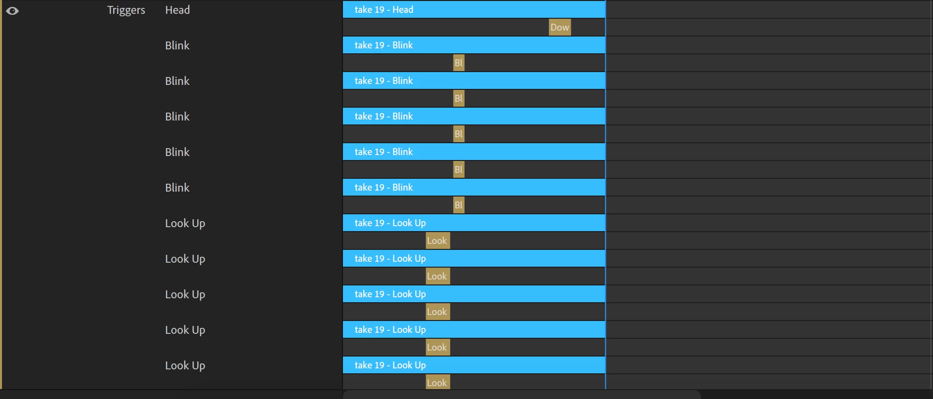 I have made a character that has multiple head turns, and for each one of those head turns I have assigned familiar triggers. For example-On each head turn "Q" is a trigger for blink. However when I record, it will trigger the blink function for each individual head turn, making it very hard to edit. What am I doing wrong here? All the head turns are independent and they are all on a swapset.