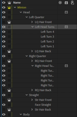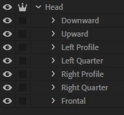 - Left Head Turns (tagged Left Quarter & uses cycle layers behavior)
