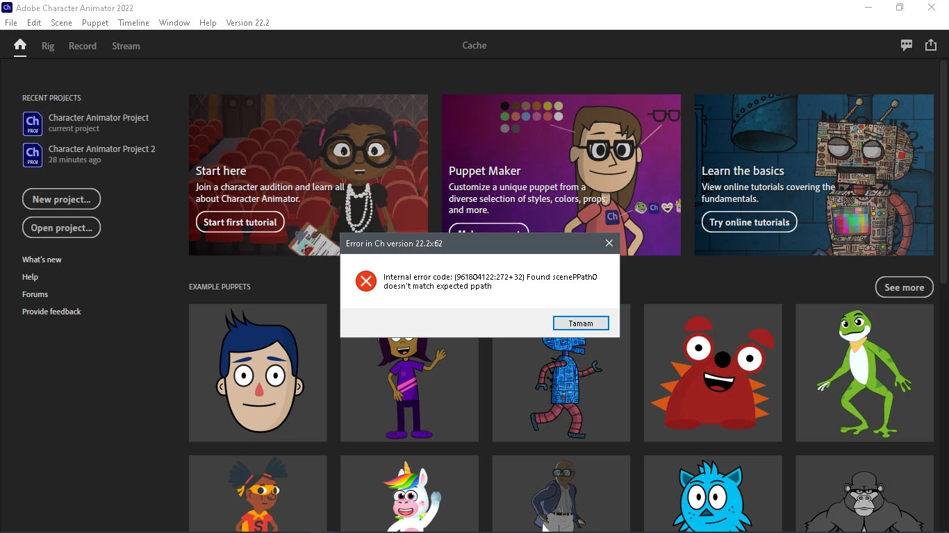 Hi, this is some sort of corruption of the cache for Puppet Maker. You can help us understand what went wrong by typing this in the windows explorer