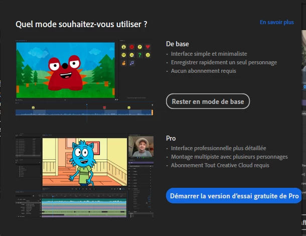 6 month ago I started a project with Character Animator with Pro mode.
