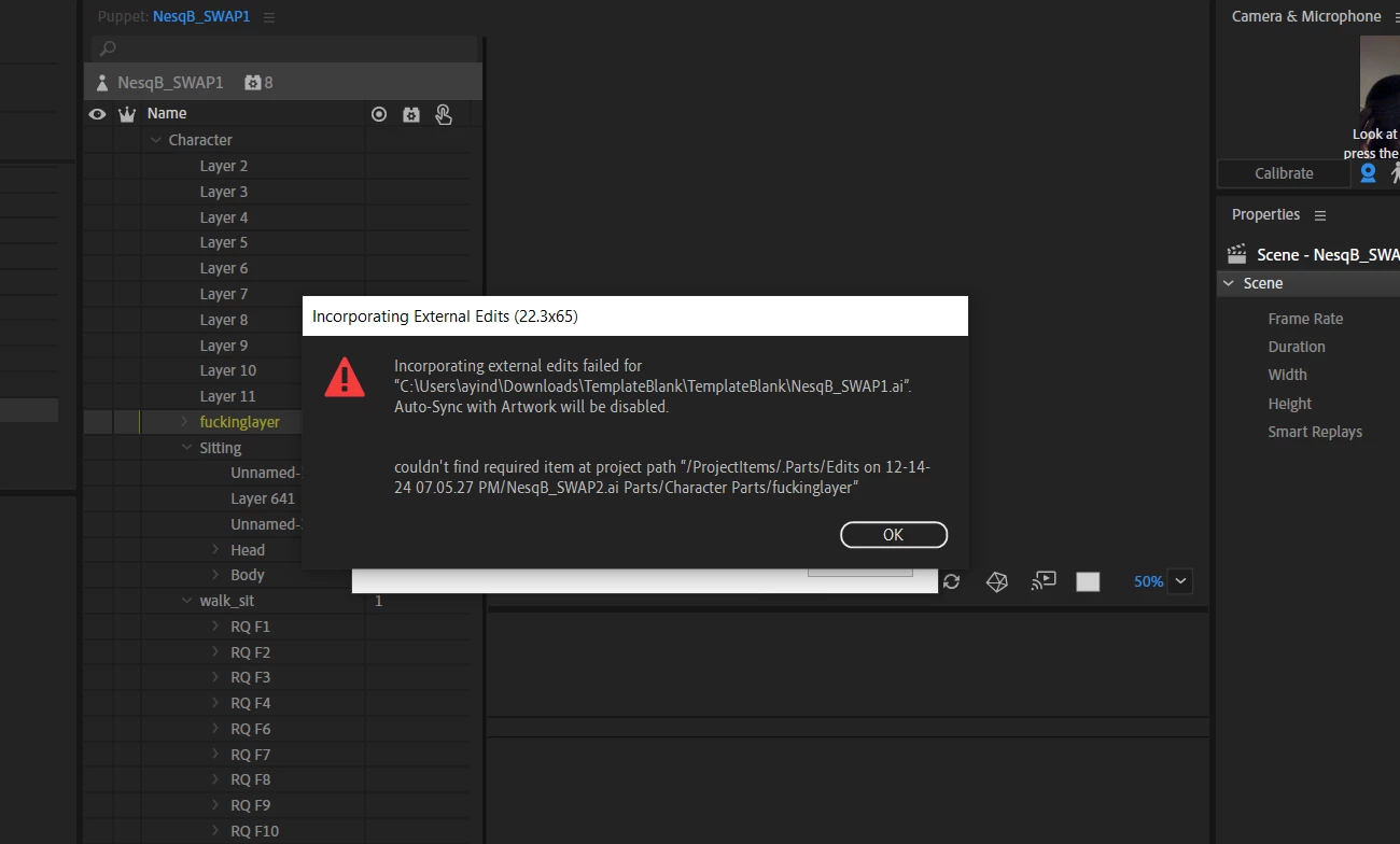 Was working on my project. Fine yesterday. Opened up character animator and had the external edits error not being able to find the project path. This project has been so stressful and took a lot of work, now all seems lost. Yesterday, I could not even get a basic cycle trigger to render, now this. I'm just done.