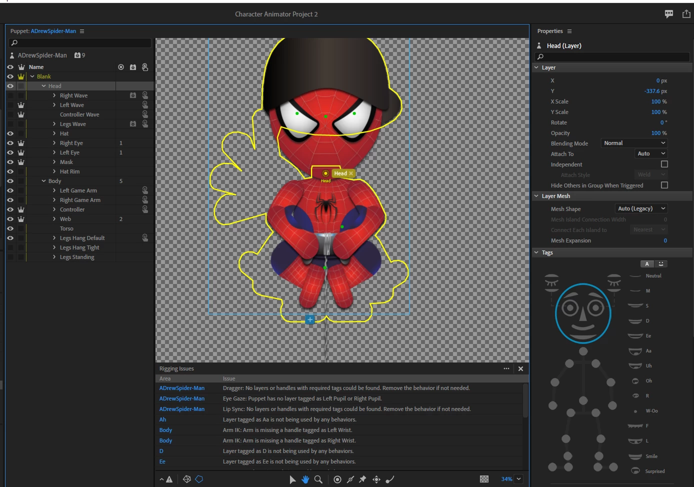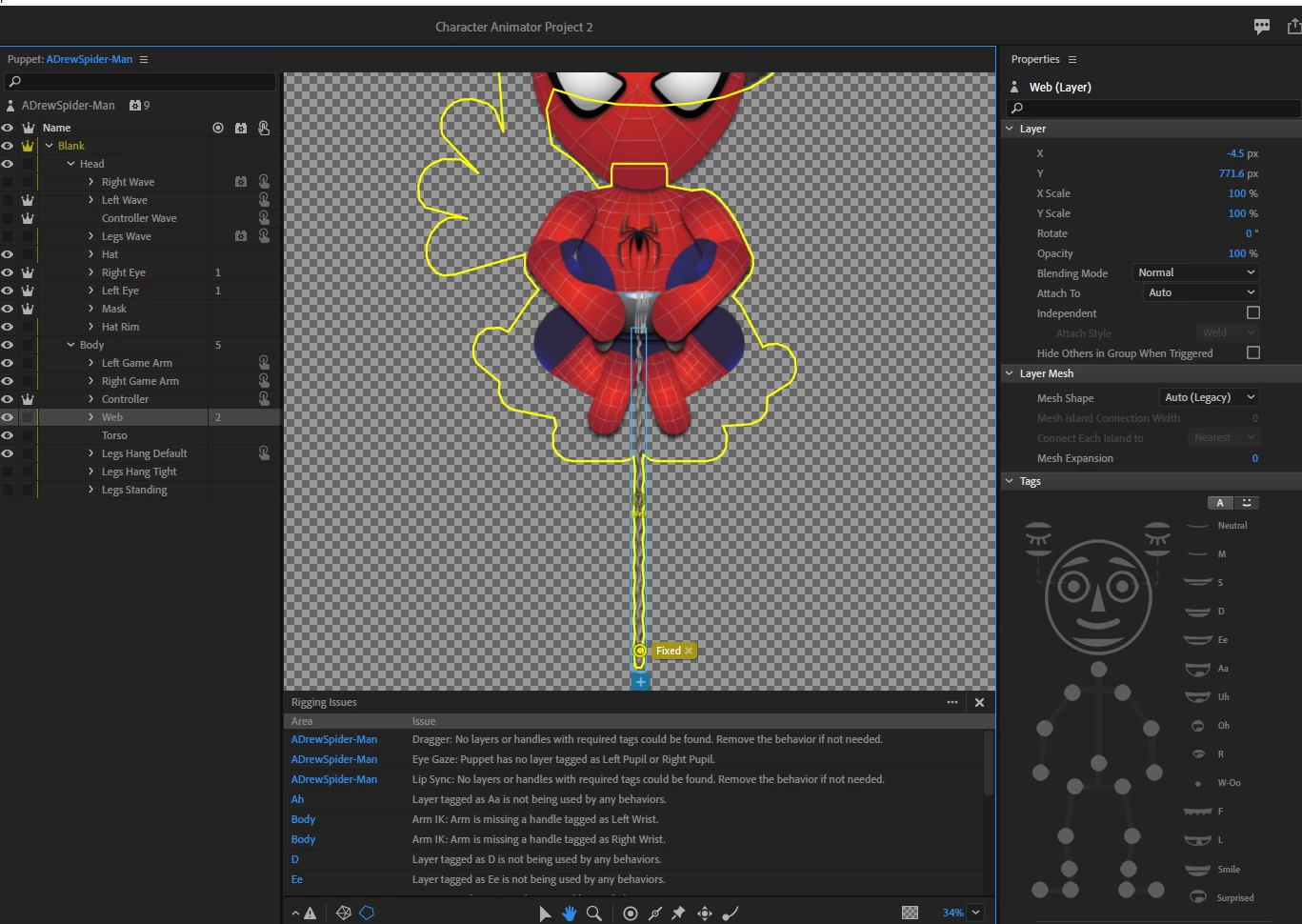 Having an issue pinning a part of my puppet and cant figure out what the issue is. I want to pin the web so the character is swinging from that anchor point and it doesnt seem to reconigze it. Whether its independant or not.