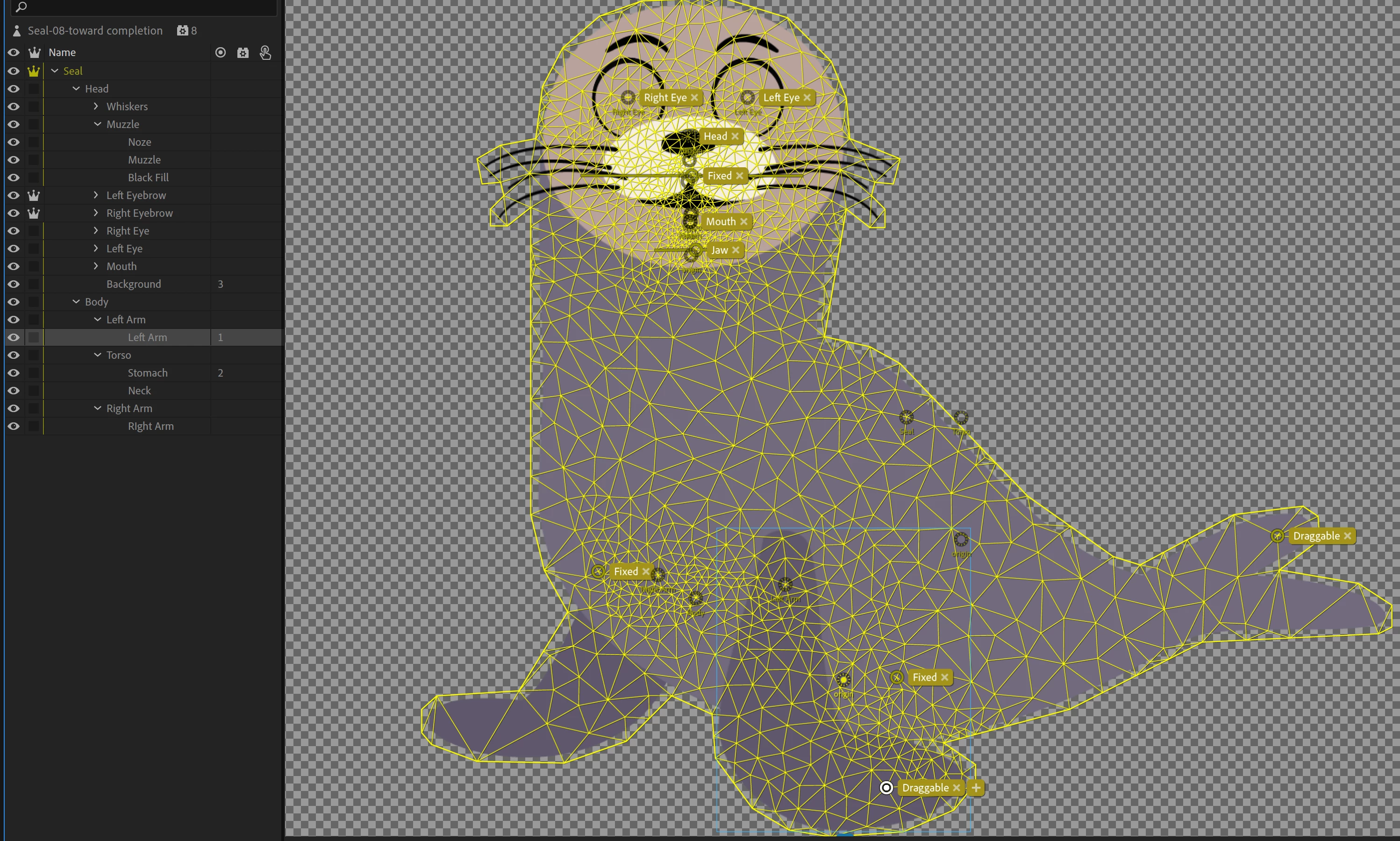 The jaw of my seal works well with the mouth, but the neck and body moves along with it. I don't mind the neck moving because I want to have a shadow underneath the jaw.