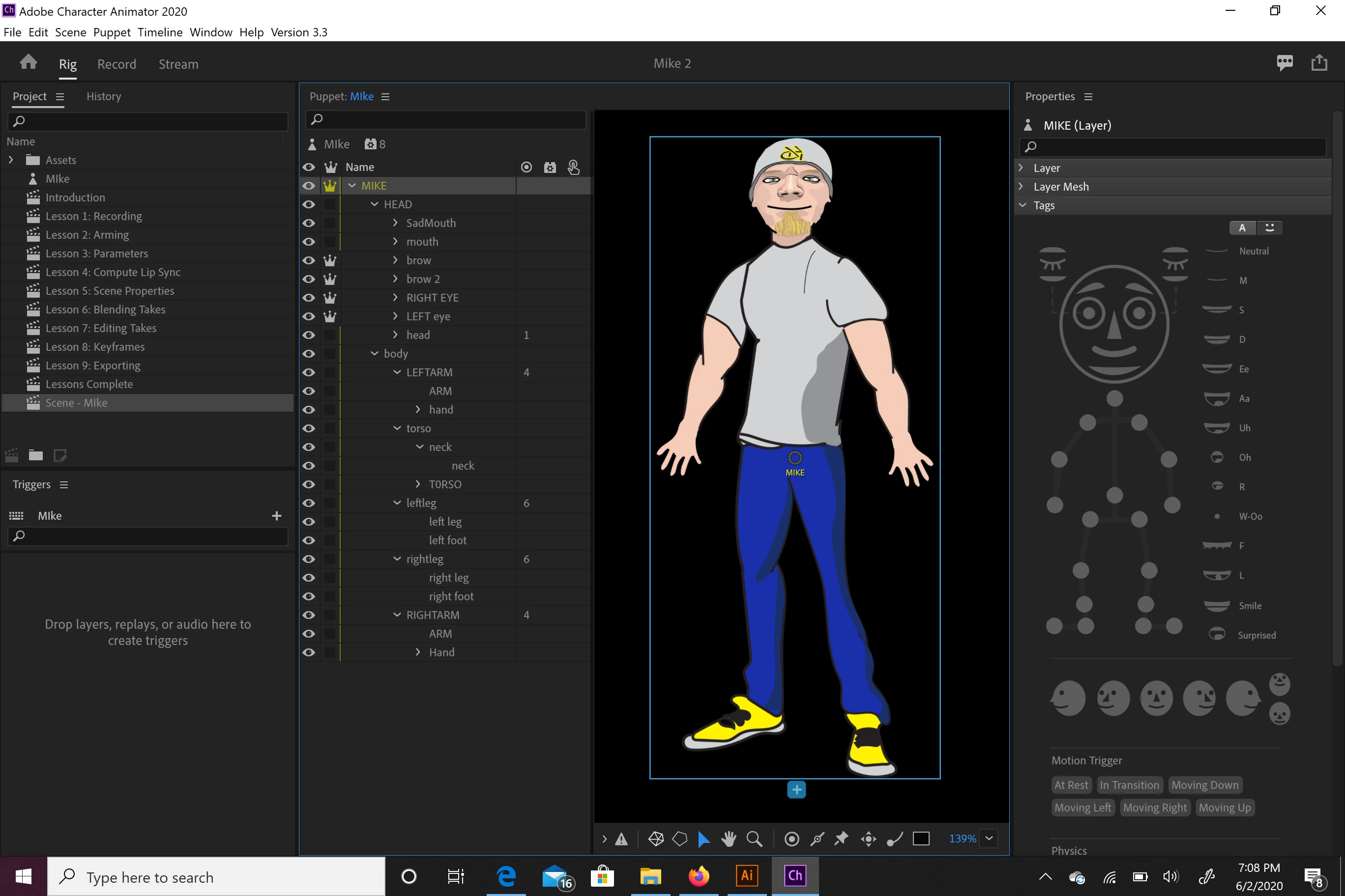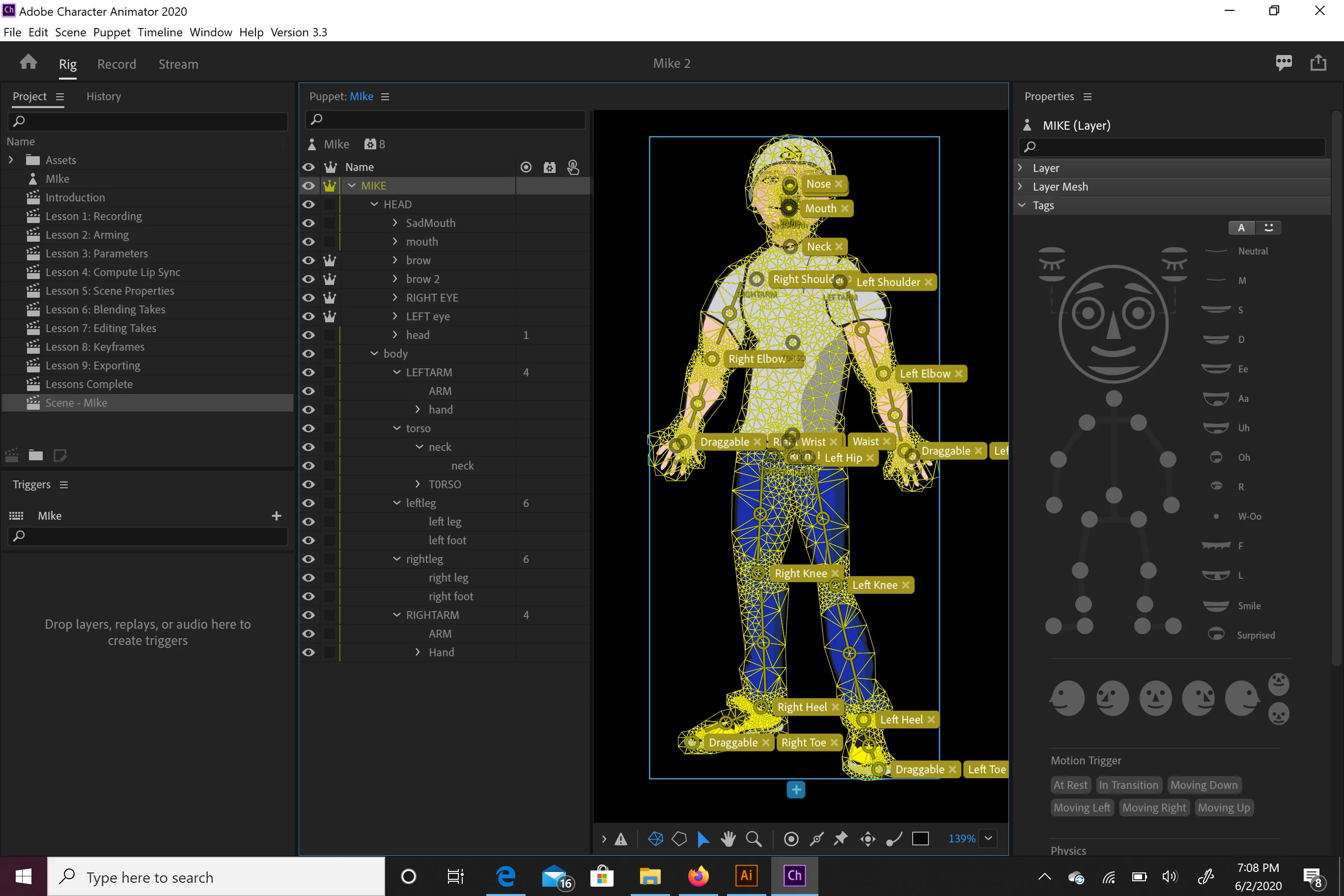 I am having issues with my legs stretching and body Swaying back and forth in the opposite direction of my head. I was watching some videos on it and had the body moving correctly but then i tried to fix other things and now it stopped moving. My arms are bending a little crazily but i feel like if i find the right spot on Arm IL I can get that right, but the other 2 issues I am stuck on. Thanks in advance