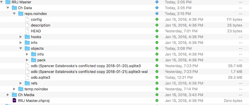 I think I might have screwed things up. Working on a project on a dropbox with two separate machines. There is no backup. Looked at some of the other threads under this category and wasn't able to find a solution that seems to fit.