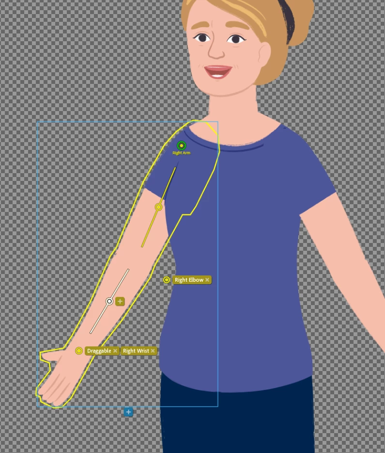 I'm setting up my first character in Adobe Character animator. Butmy shoulder is bending in a wierd way when I move it up. Do you have any ideas of what I can do to fix it?