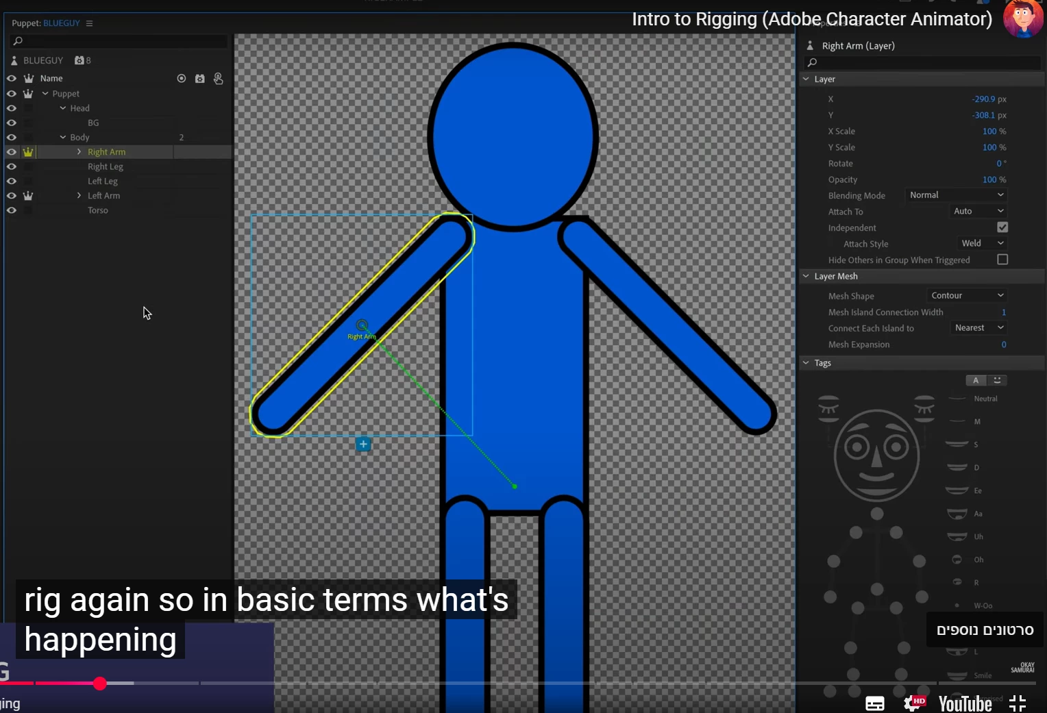 Missing Green Connection Line When Rigging Arm in Adobe Character Animator