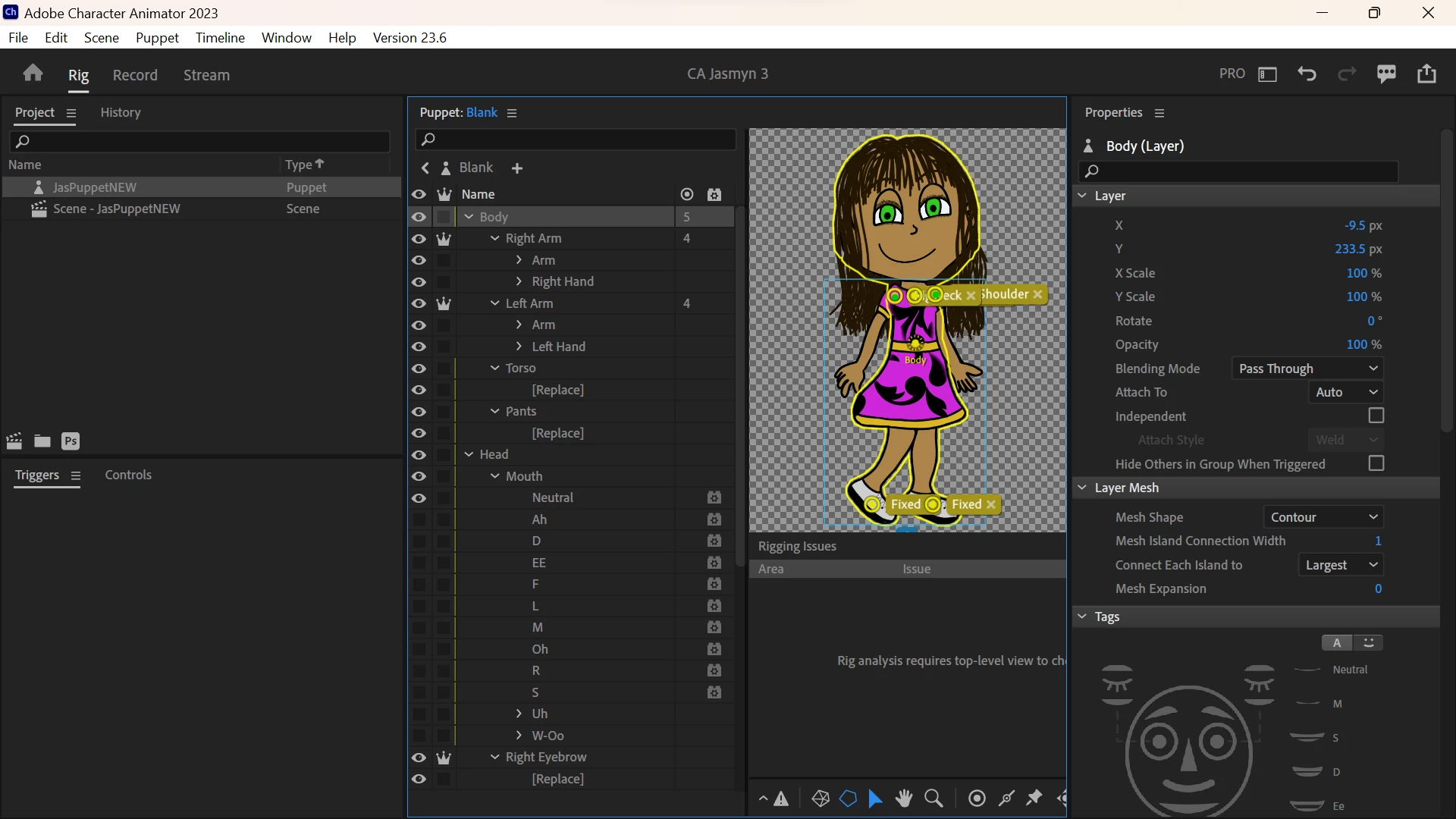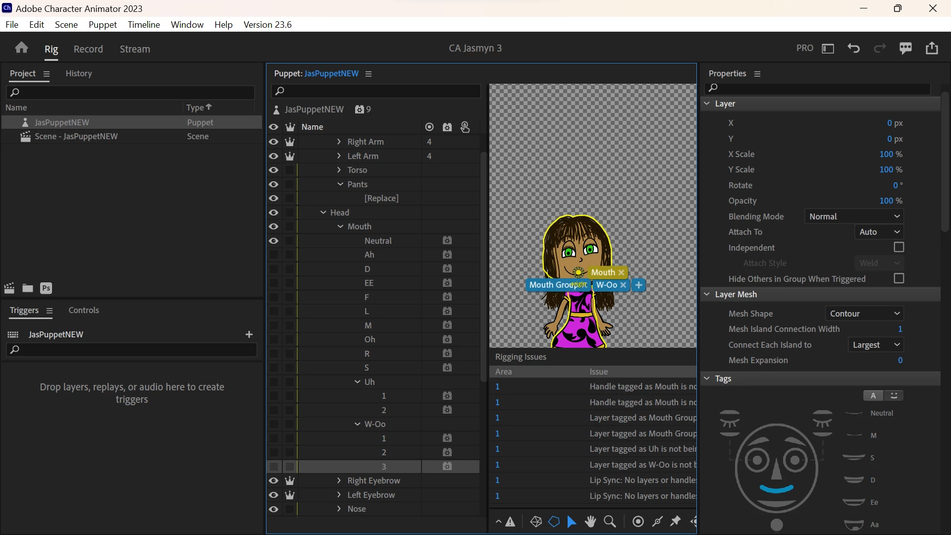 I've read through every support forum I can find about disppearing mouths and none of the fixes applied to whatever issue I'm experiencing. My puppet seems to be working perfectly, except when I'm talking or importing audio to be used for lip syncing, the mouth disappears for a frame frequently. It's very noticeable, and I can't seem to find the cause for the flashing mouth.