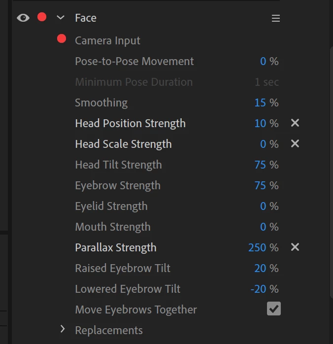 I tired bumping up the parallax strength the mouth doesn't move. Here are the face behaviour settings I have in the scene and attached is an example of how the mouth isn't moving like the rest of the facial features. If anyone has a clue what I'm missing I'd appreciate it! Let me know if I can provide anything else that might help solve this issue. Thanks!