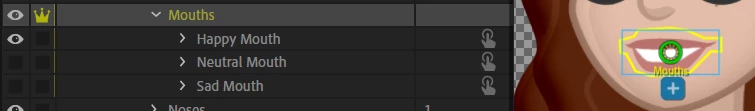 This also affects lip sync. The lip sync only shows up for the default mouth and the other two mouths don't activate during playback even when the timeline indicates a change.