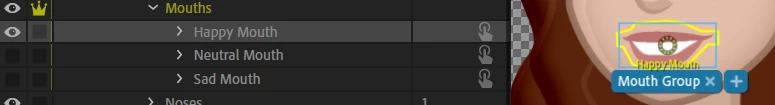 Hello. I have a character I created using PuppetMaker that has three mouth sets (Default Mouth, Happy, Mouth, Sad Mouth all inside a "Mouths" group) and I have triggers set for them as a swap set. I can sucessfuly trigger them before recording and after I record them, the trigger changes show up on the timeline. However, when I play back the scene, the mouth style doesn't change. Only the default is shown.