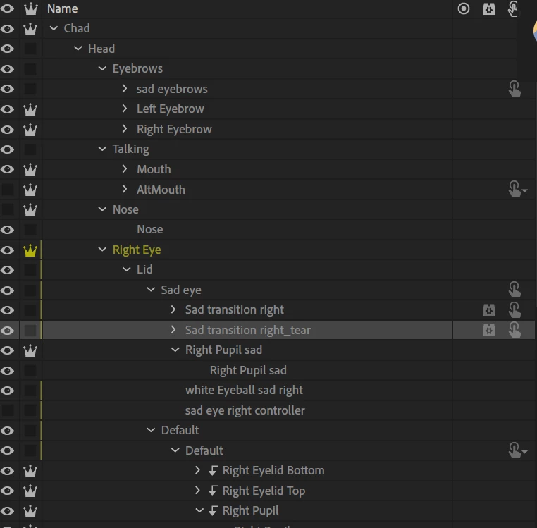 I tried to create a new set of eyes for the sad emotion but if i tag both pupils only the last one tagged will work.