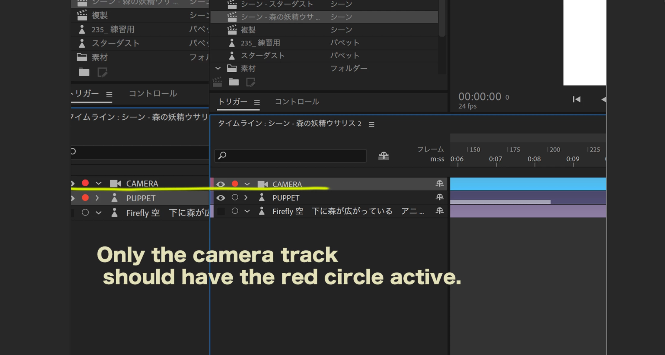 Whenever I add " NEW SCENE CAMERA" with the intention of moving the camera to have close and wide shots, the triggers move the puppet instead of the camera, what should I do?