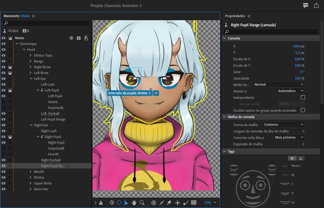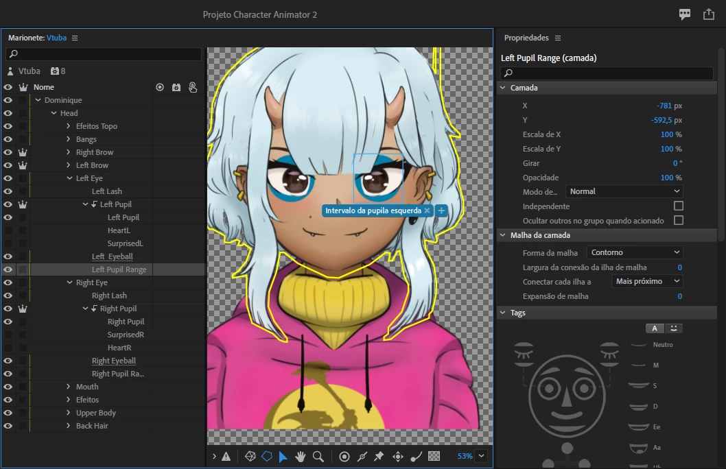 the only difference I found between one eye and the other was in the pupil range, which has the option "Attach to" on the right, and not in the other. in the rest, everything is the same.